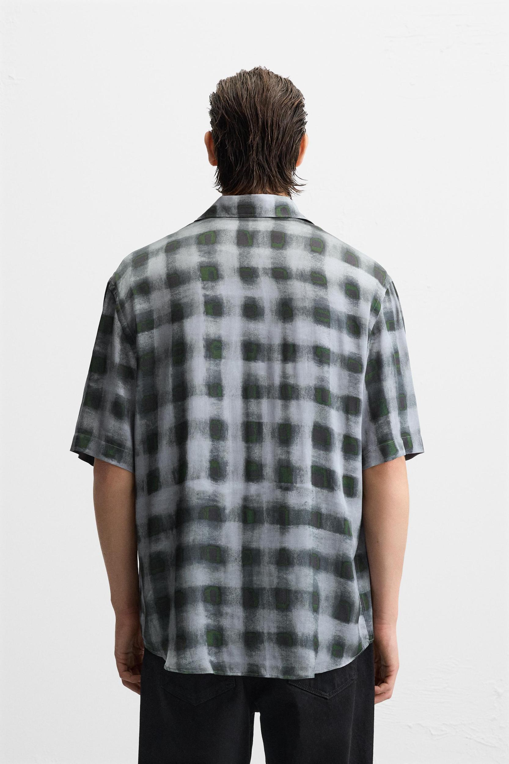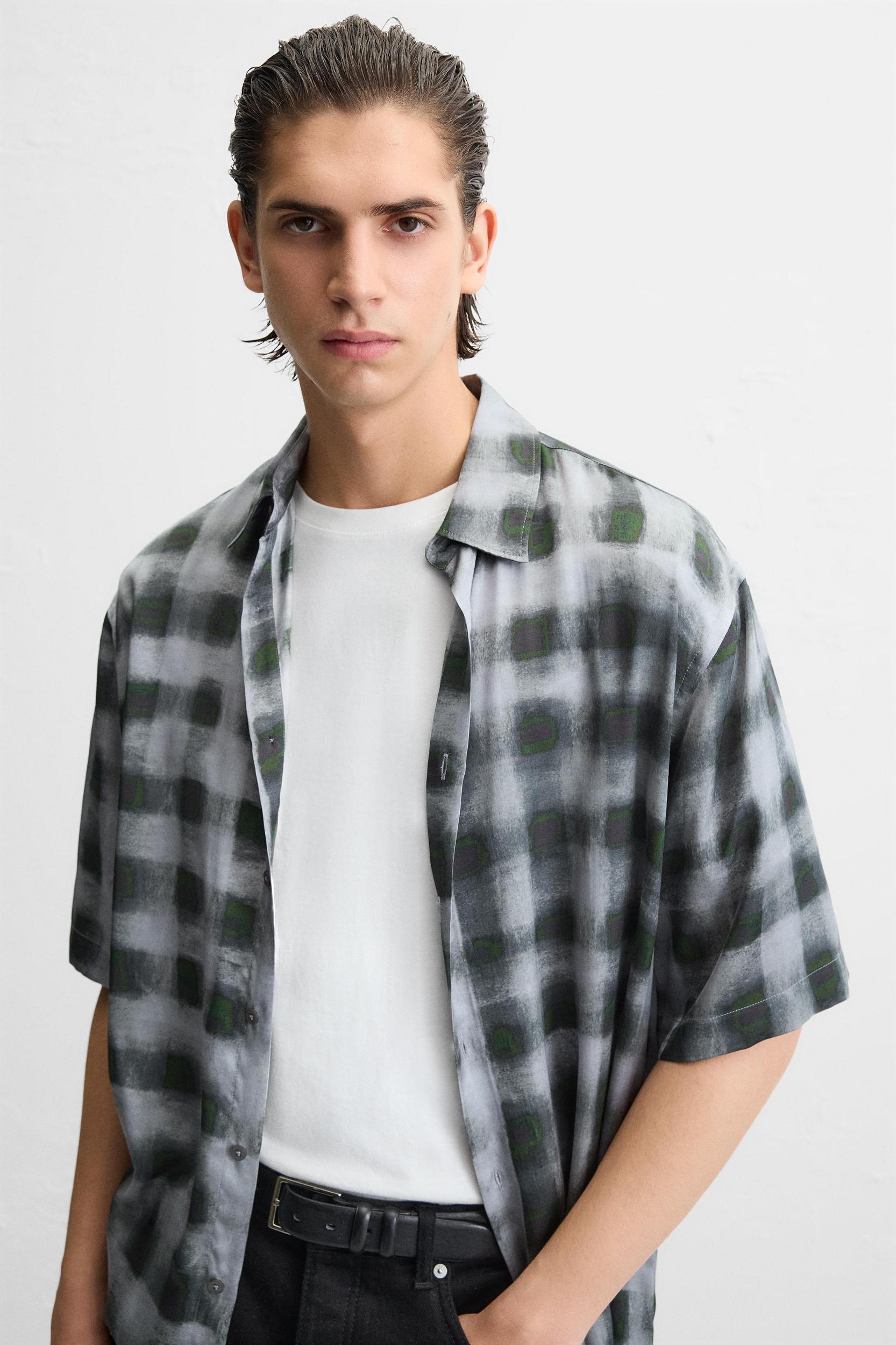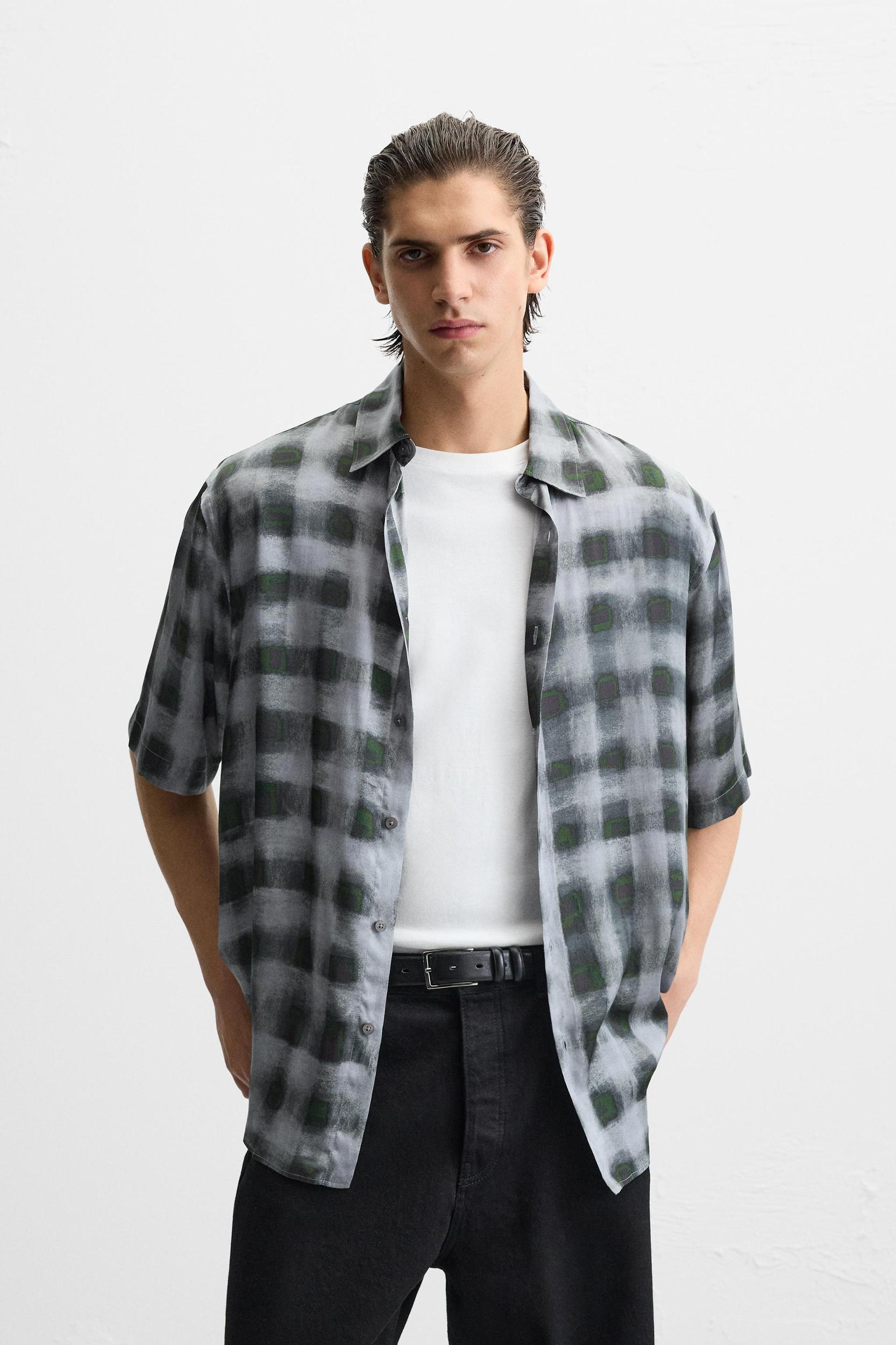 Relaxed fit shirt made of flowy viscose fabric. Spread collar and short sleeves. Front button closure.