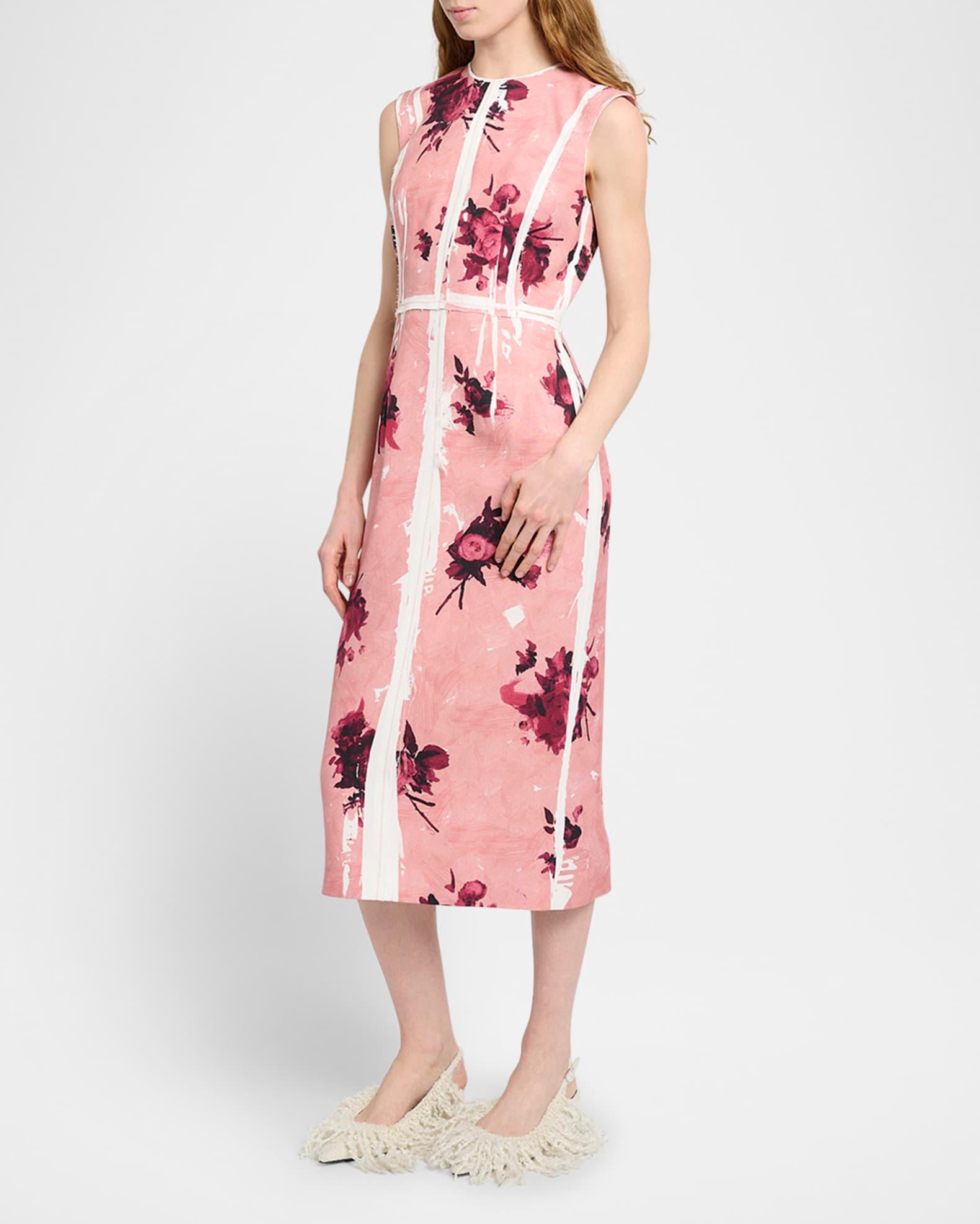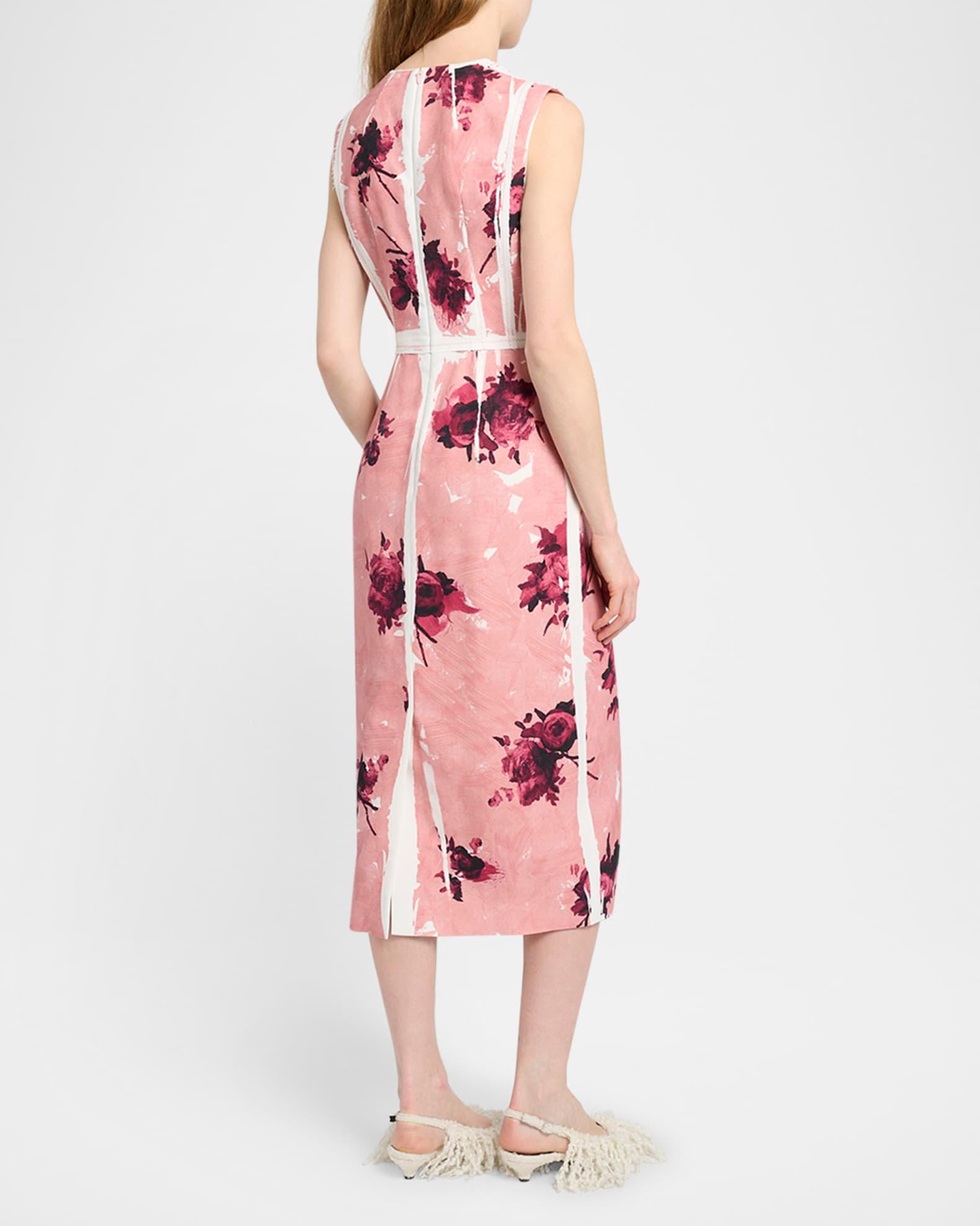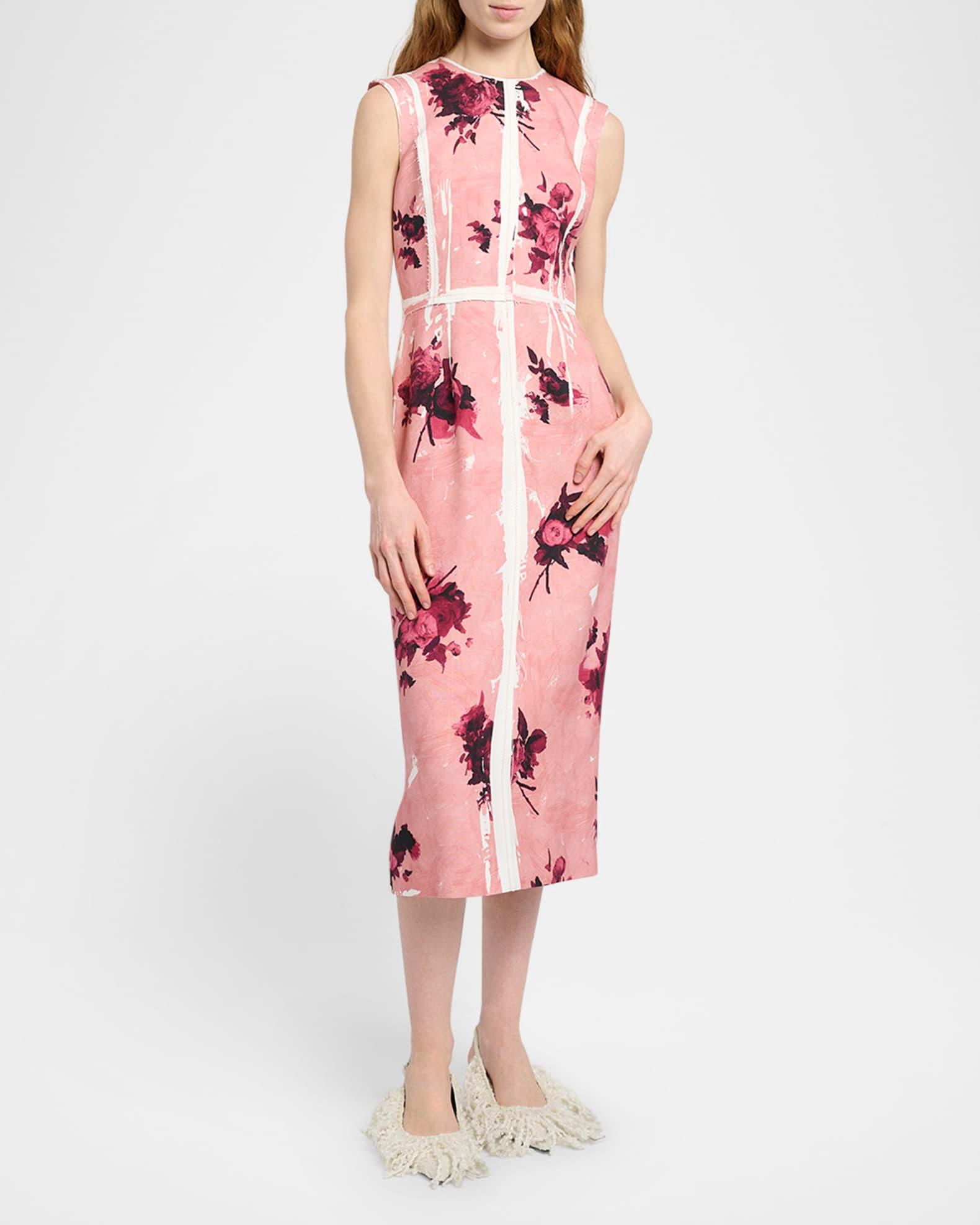 Erdem pencil-style dress illustrated with an abstract rose print Crew neckline Sleeveless Sheath silhouette Hem falls below the knee Invisible back zipper Viscose Lining: Acetate/silk Dry clean Made in United Kingdom