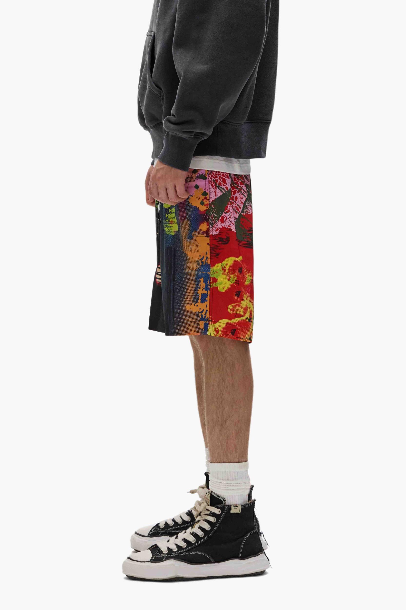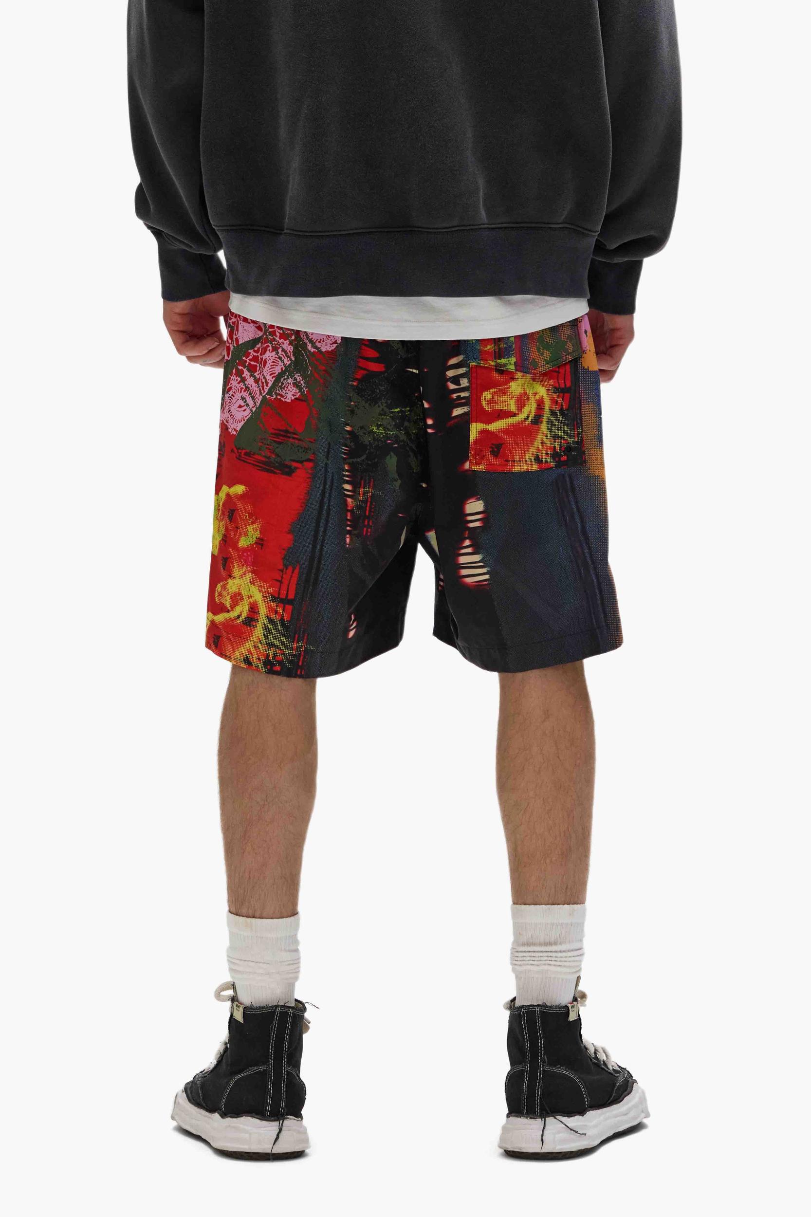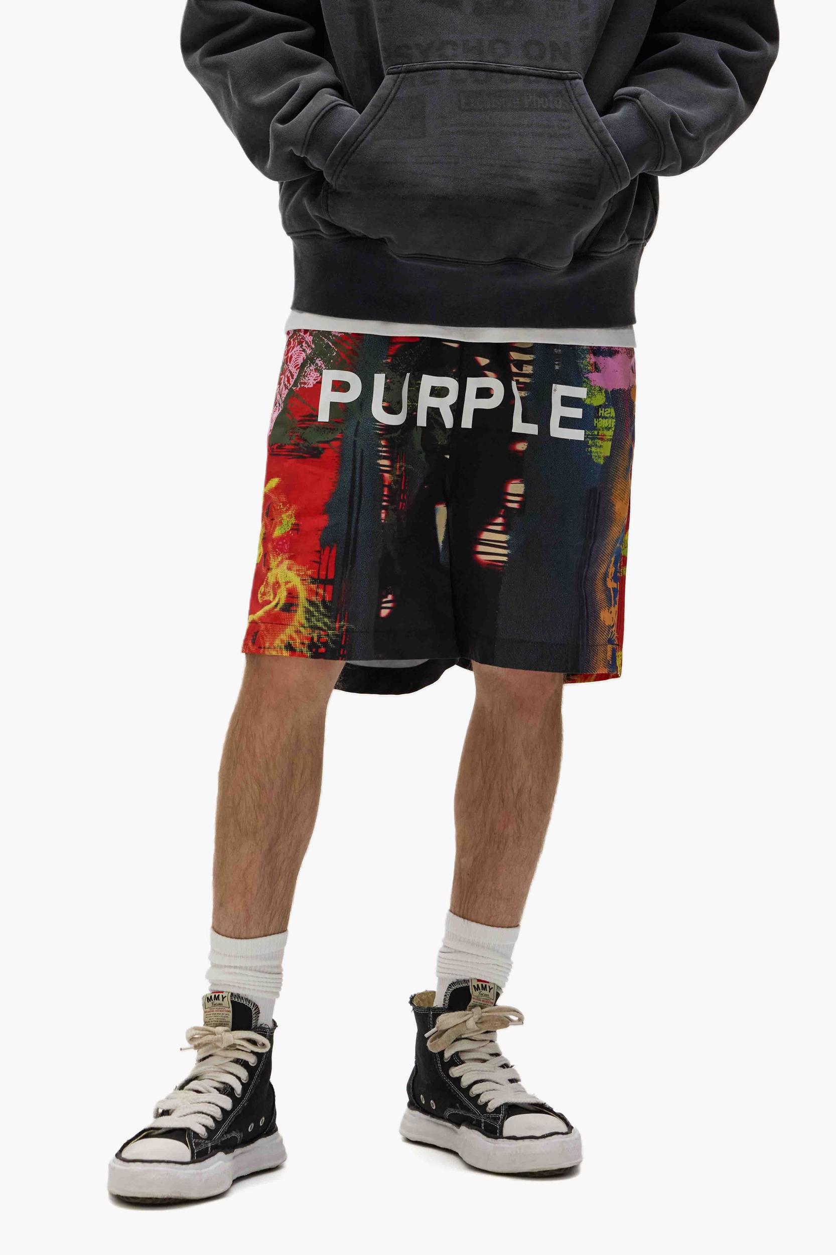 Constructed from a moisture-wicking, odor-reducing stretch polyester, these lightweight shorts feature an abstract digital print as well as a pull-on waist with drawcords. Spring Summer 2025 White Label 100% Polyester 11 1/2" Front Rise, 5 3/4" Inseam, 13 1/4" Leg Opening Water Repellent Treatment Purple Branded Silicone Patch Screen Print