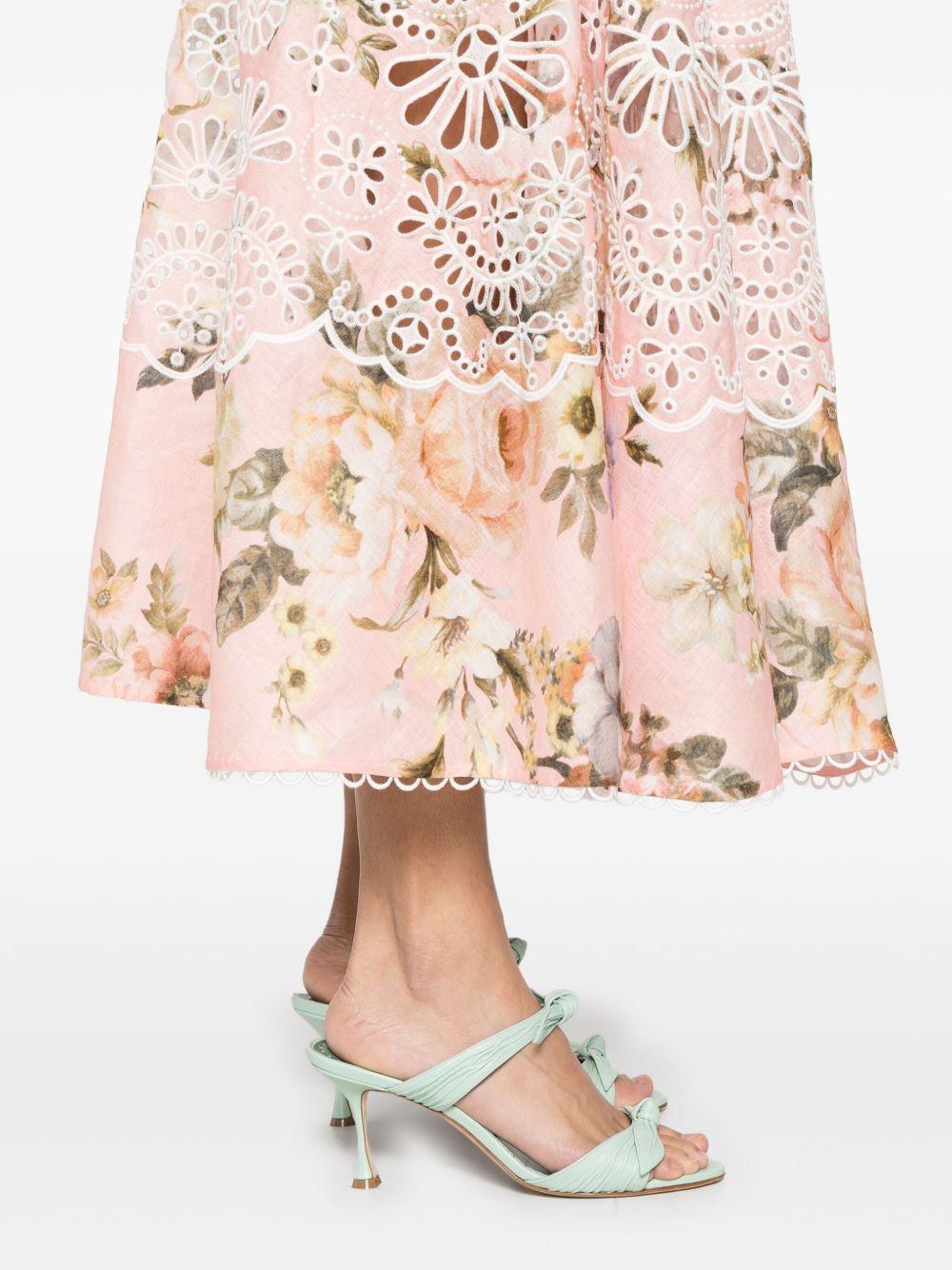 ZIMMERMANN Acacia Broderie midi dress | Pink | Linen/Flax/Polyester/Cotton | Day Dresses | Dresses | Clothing | Women