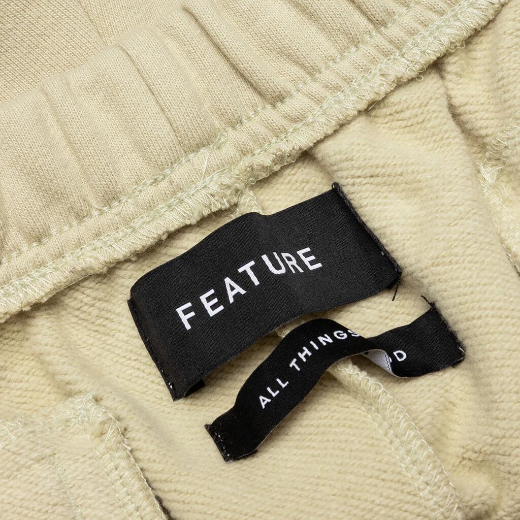The FEATURE Academy Short is the latest addition to our graphics apparel. Cut from 100% cotton, the shorts are made from French terry, making them extremely soft + comfortable. Each piece is garment-dyed for even color coverage, and a flocked 'Feature' monogram is placed near the hem. The flocking process creates a velvet-like texture and adds subtle detailing. The design features an elastic waistband with a drawstring for adjustable sizing. Side pockets + back welt pockets are placed for storage, while custom feature tags on the interior complete the look. 100% Cotton French terry Elastic waistband + drawstring Flocked monogram Side pockets Back welt pockets FEATURE branding Style No: F060123X32AB