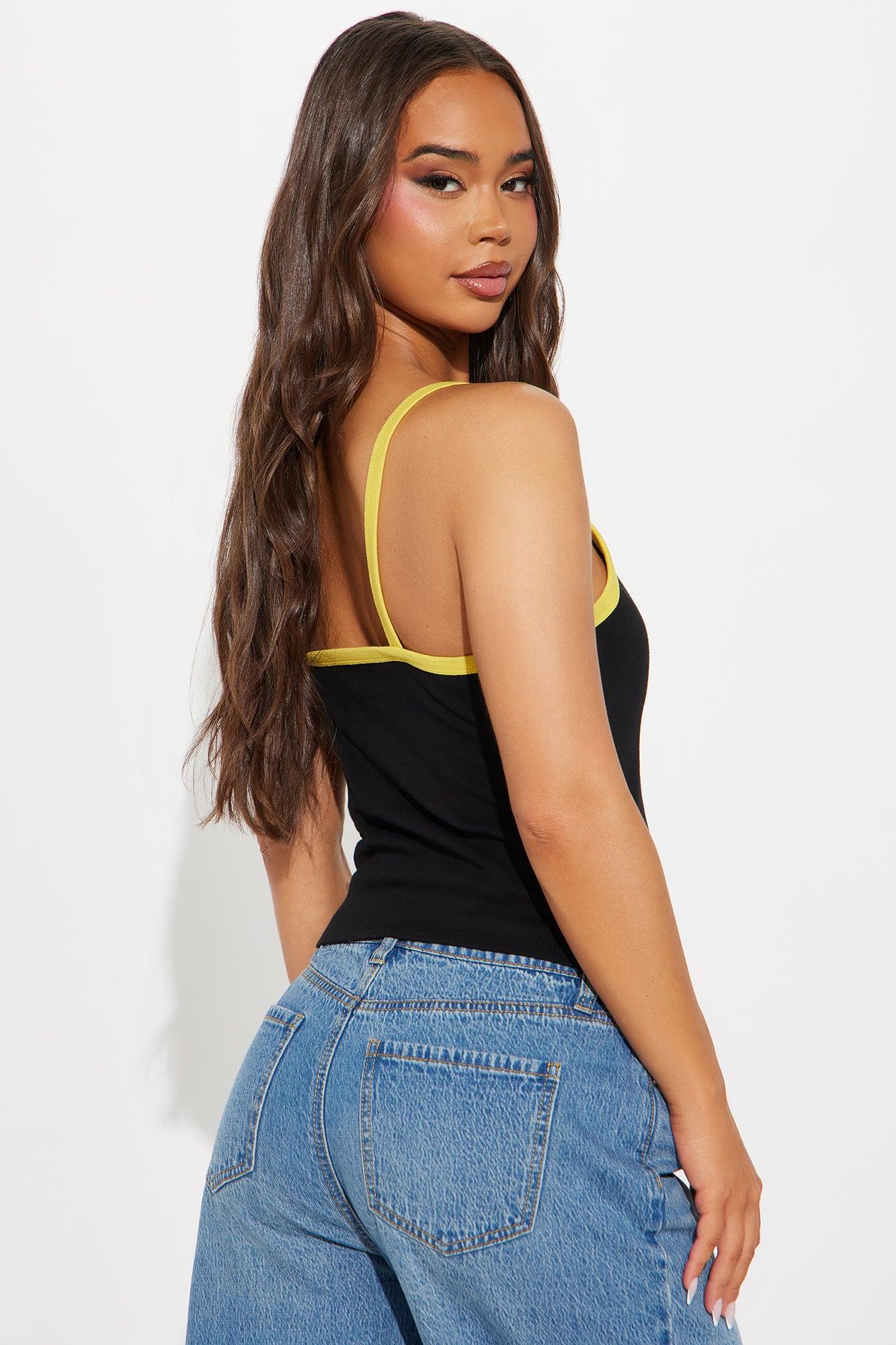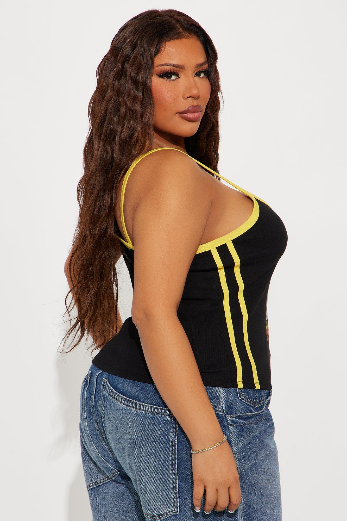 Available In Black. Scoop Neck Sleeveless Front Screen Contrast Trim Stretch Due to the nature of the sublimation print process, each garment is unique 100% Cotton Imported