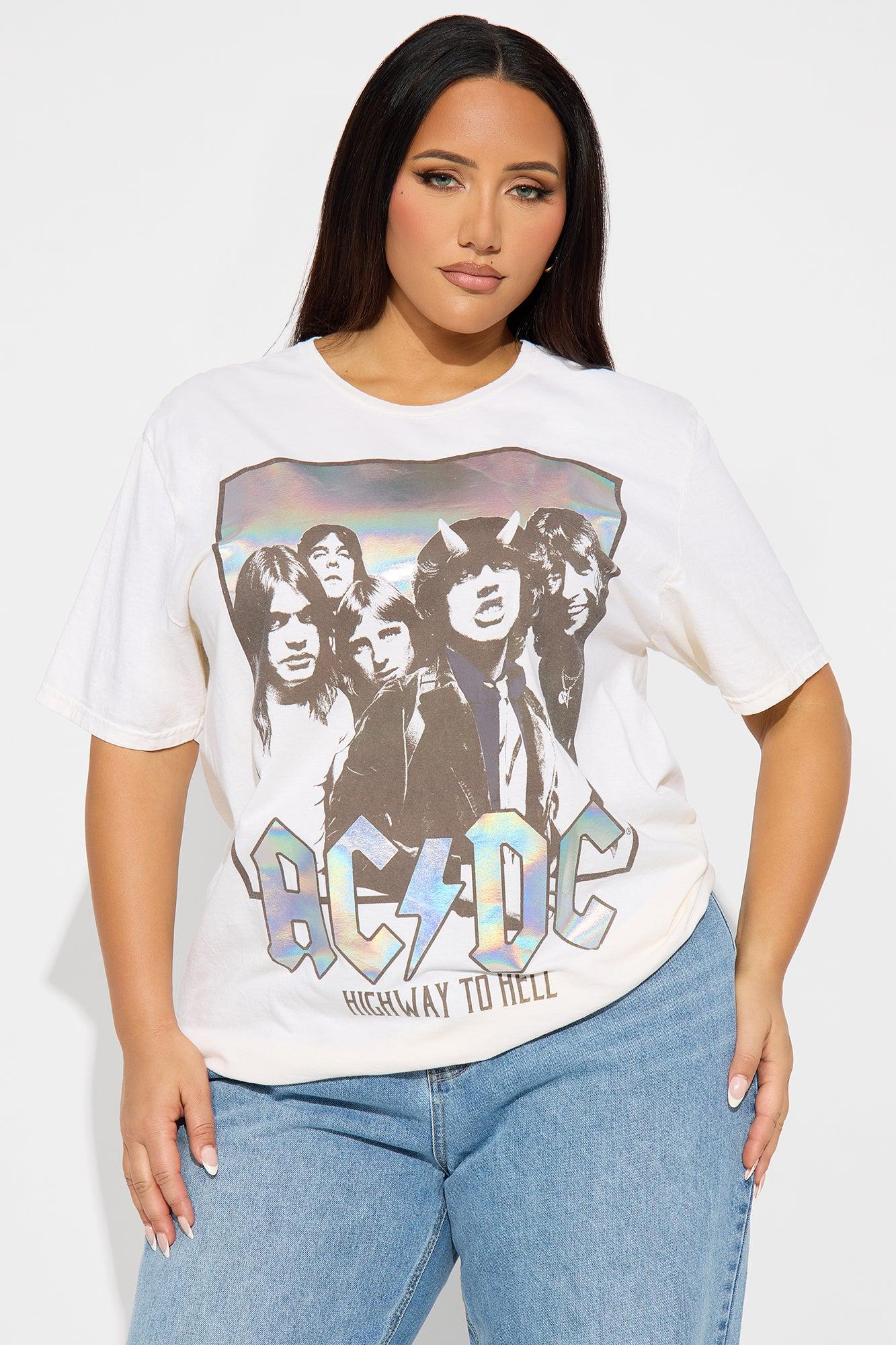 ACDC Washed Iridescent Oversized Tee - Cream Female