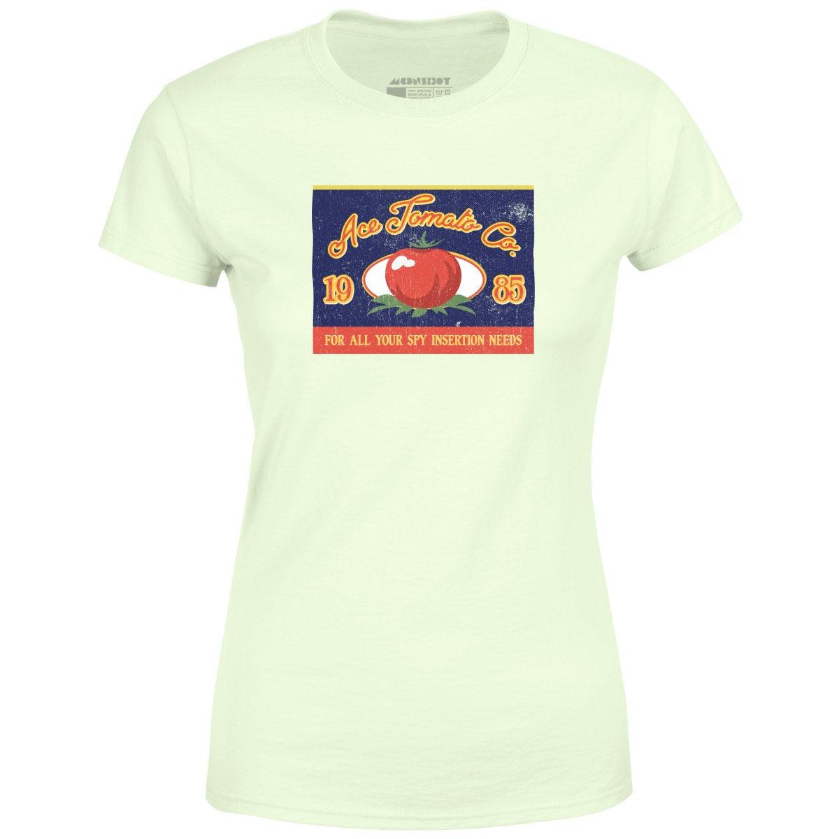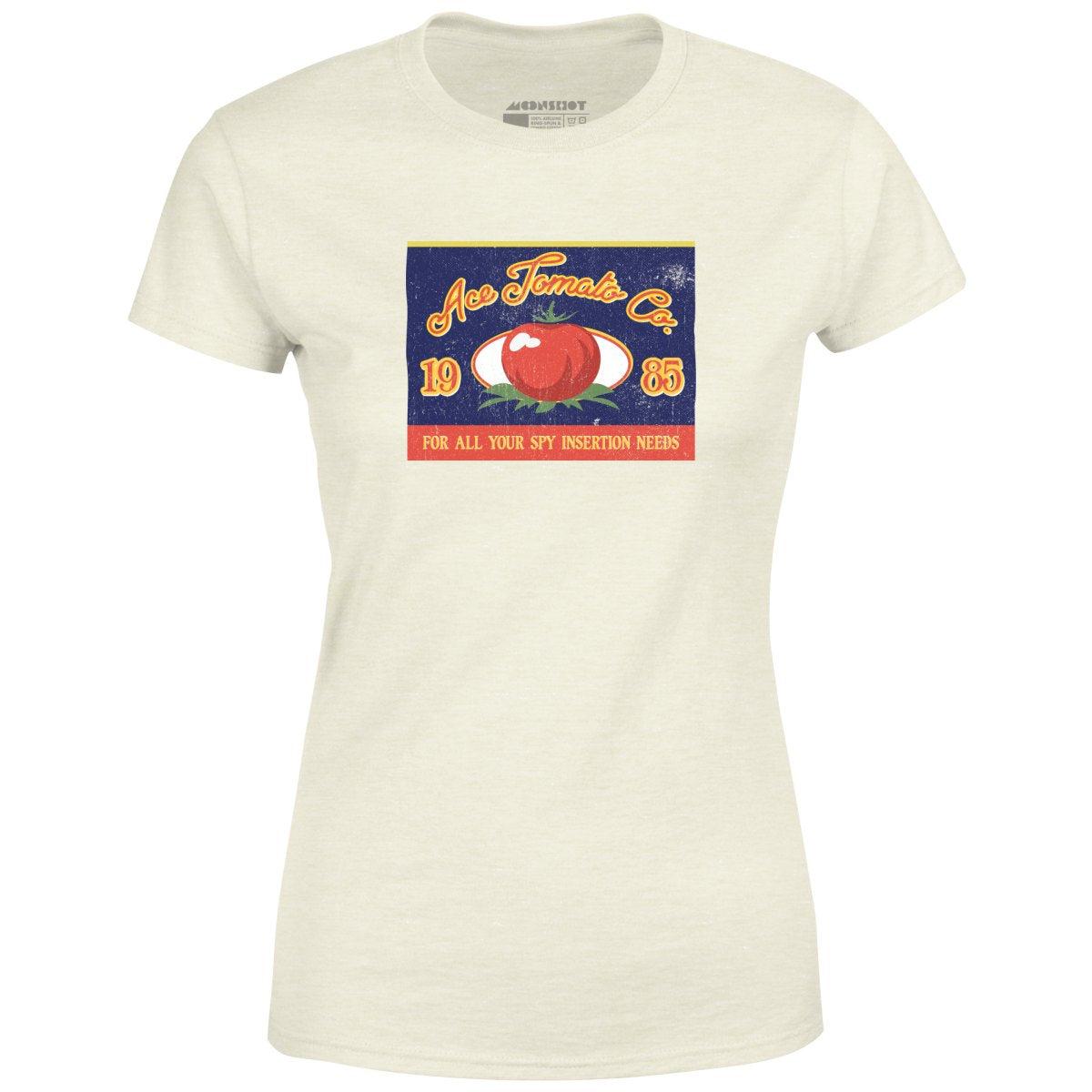 The Ace Tomato Company. For all your spy insertion needs. Inspired by Spies Like Us. Printed on our super soft 100% ringspun & combed cotton women's T-Shirt. Or upgrade to our Luxury 52/48 cotton/poly vintage heather edition for an even softer classic look. We print & ship all of our high quality graphic tees in the USA.