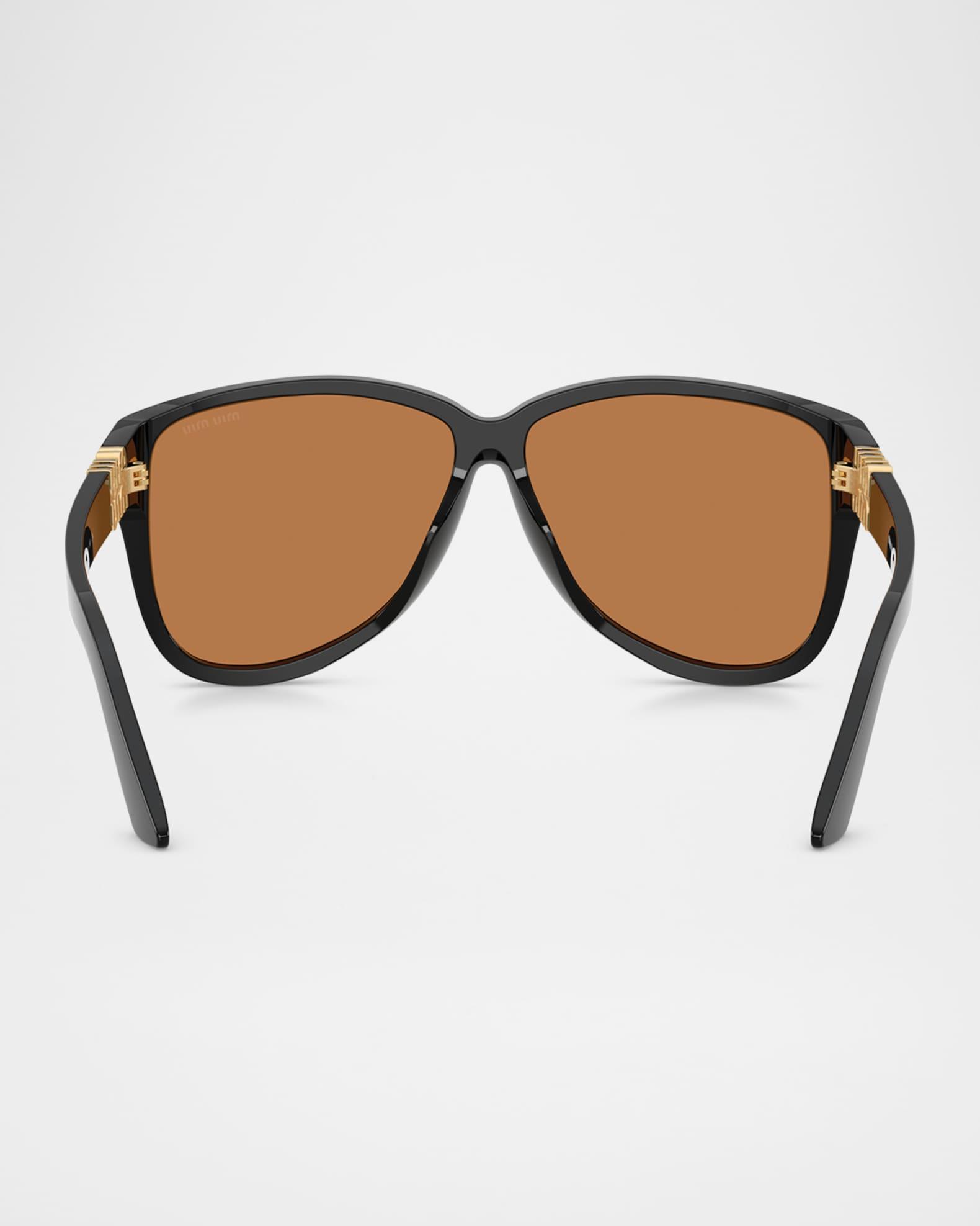 Miu Miu sunglasses reinterpret the classic aviator silhouette with a bold, feminine twist. Crafted from full acetate with a softly rounded shape, the design blends vintage inspiration with a contemporary edge. Eye/bridge/temple (in mm): 61-12-140mm Monochromatic lenses Saddle nose bridge Gold-tone logo on temples 100% UVA/UVB protection Acetate Spot clean Made in Italy Proposition 65 warning for California residents