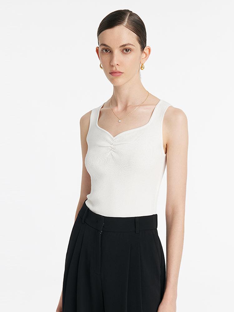 -Acetate -Soft and comfortable -Versatile The vest is crafted from acetate fabric with cool touch, smooth texture, and moisture-wicking properties, making it ideal for sensitive skin and warm weather. The design is simple yet sophisticated, featuring a unique V-neckline that adds a modern twist to the classic vest silh
