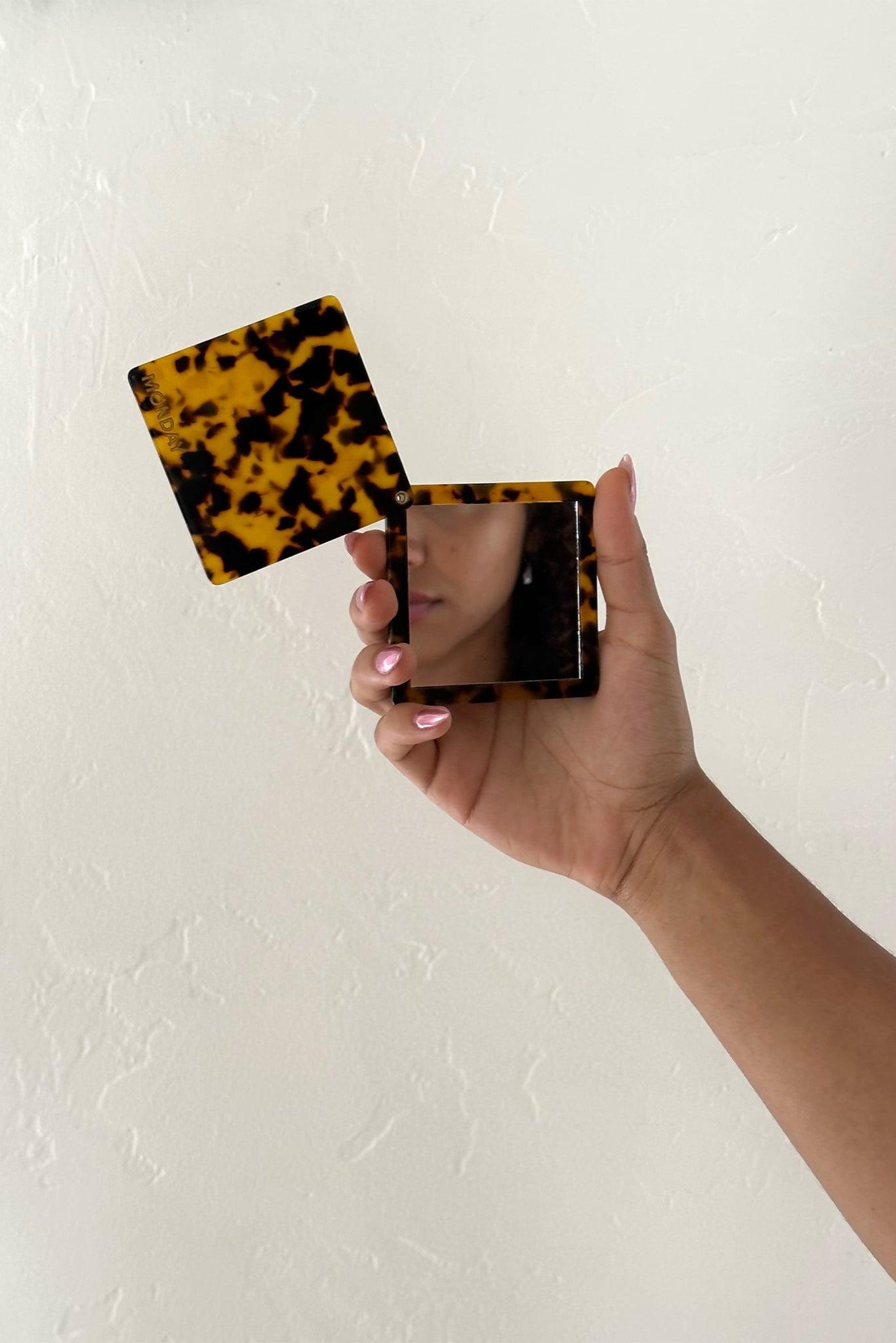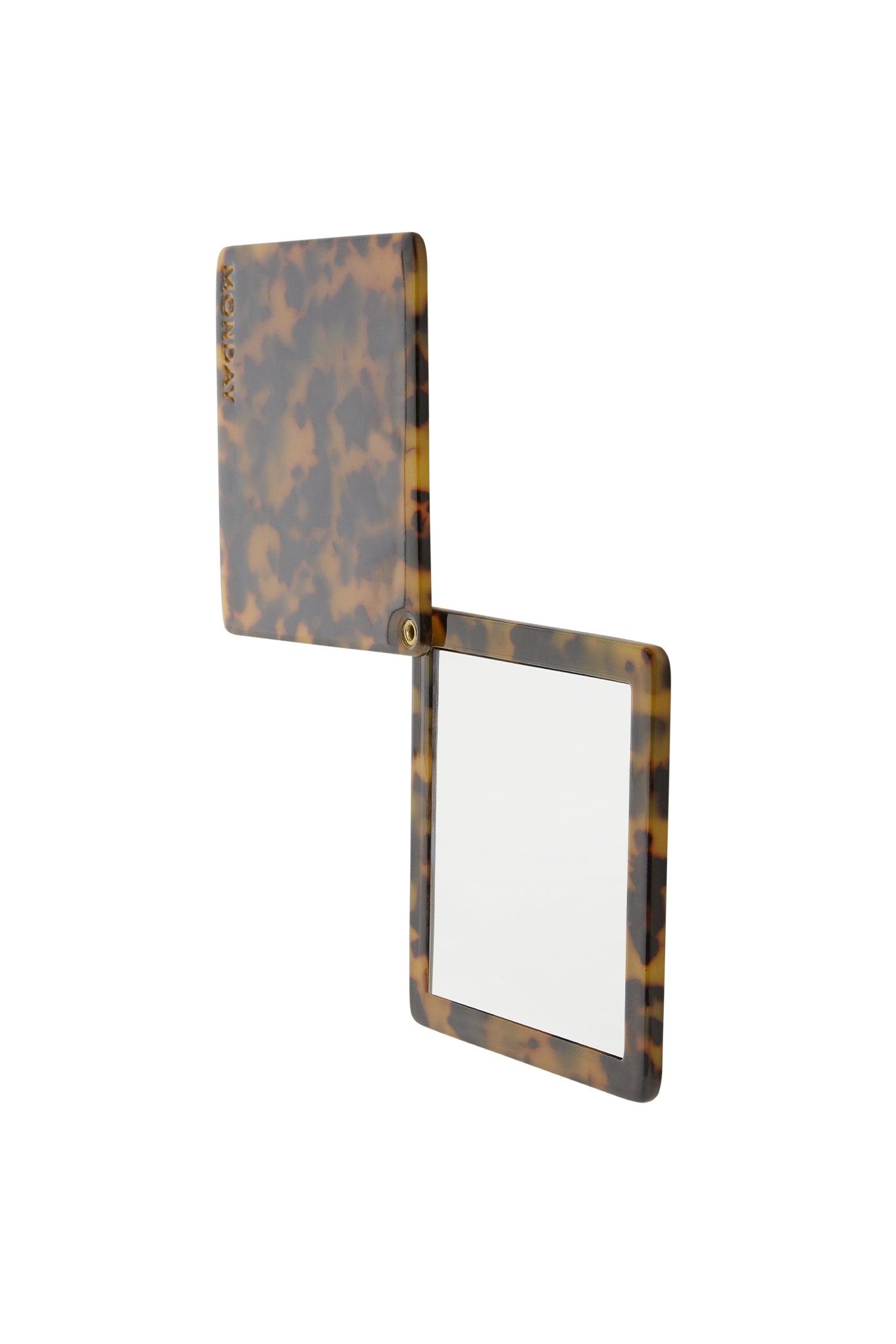 Face check Give yourself a double take with our Acklins Mirror when your on the go! Made to perfectly slip into your purse or pocket, this chic tortoise shell mini mirror features a slide open detail and compact-able case. *Both mirrors sold separately.Features:Engraved Monday logoSlide to openCompact-able case Made of acetate