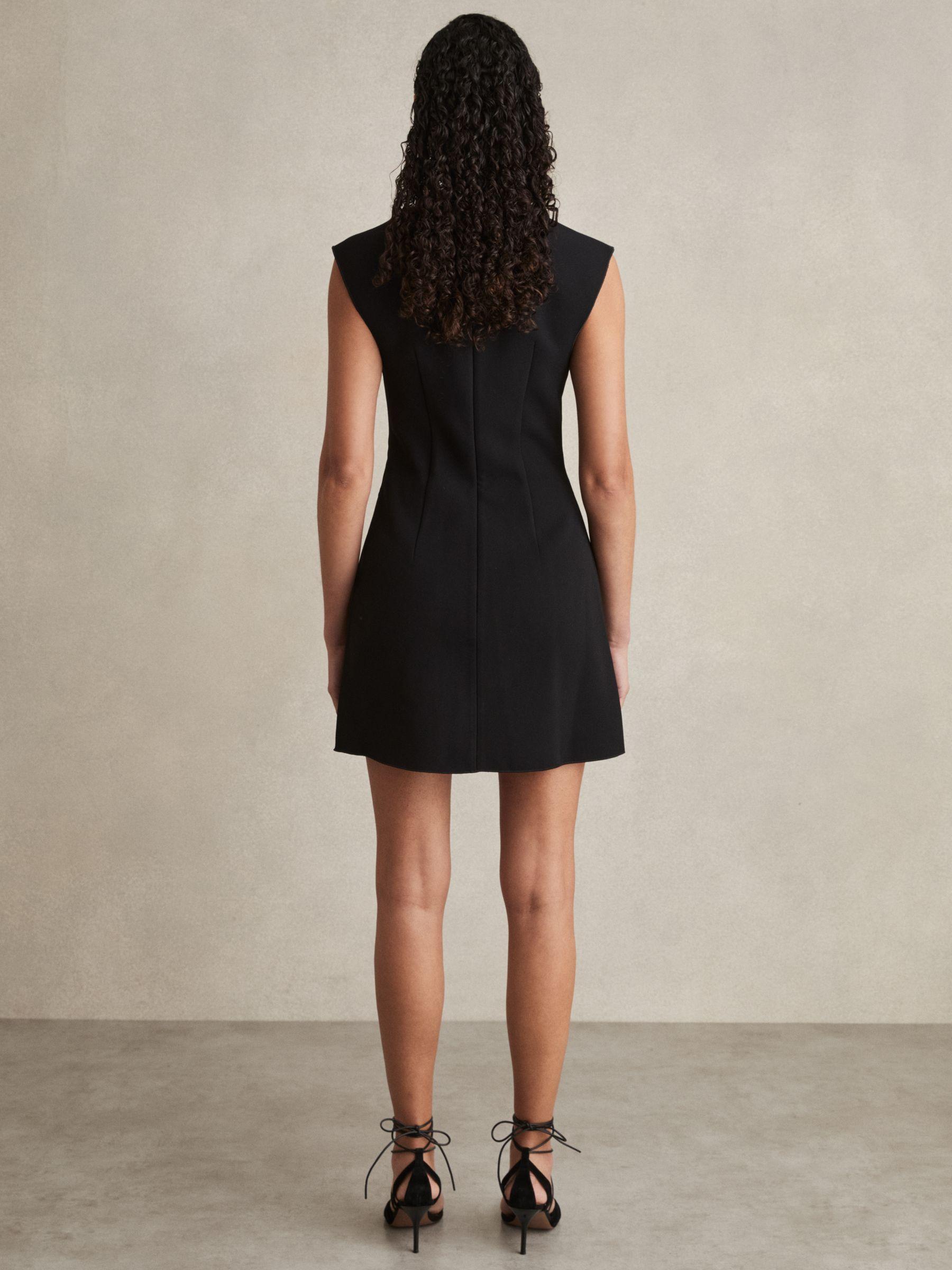 Tailored from bonded crepe for a structured fit, the Warfield mini dress exudes sleek, modern sophistication. A draped neckline and asymmetric front seam introduce subtle dimension to the minimalist design, while the concealed back zip ensures a smooth, seamless finish. Bonded crepe Draped neckline Asymmetric front seam Concealed zip to reverse Acler, curated by Reiss, is a selection of women’s occasionwear that bridges the gap between modern tastes and couture techniques.