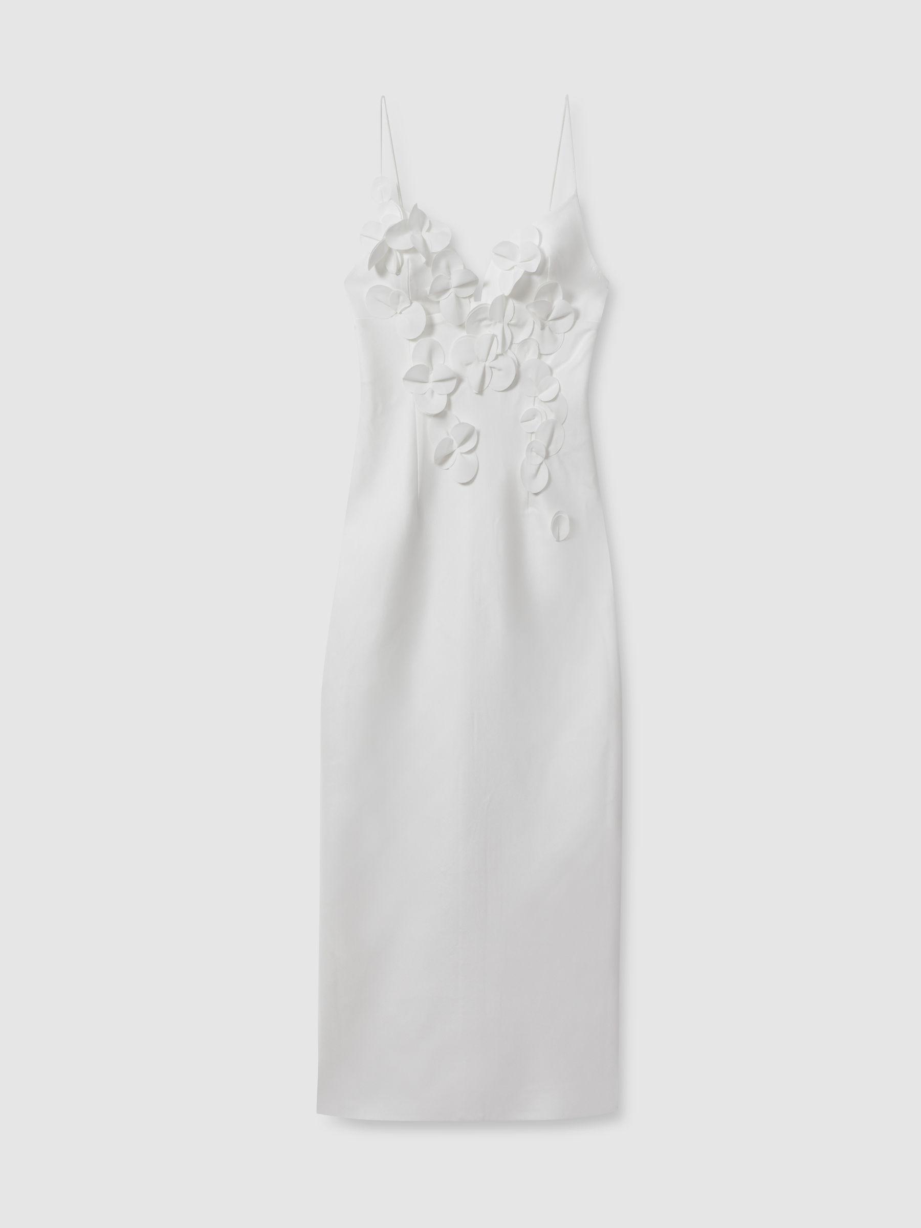 Crafted from a thick, lined fabric with a subtle stretch and sheen, the Isla midi dress smooths over the frame, finishing below the knees. Ruffles detail the sweetheart neckline, chest, and back. Thick fabric. Ruffle detailing. Zip-closure to reverse. Fitted Midi length. Acler, curated by Reiss, is a selection of women’s occasionwear that bridges the gap between modern tastes and couture techniques.