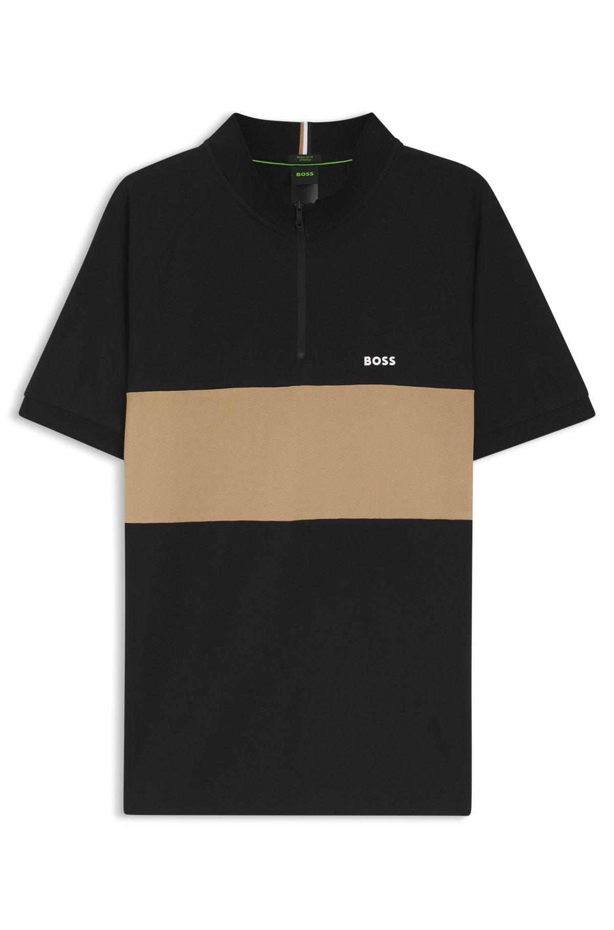 With UV protection and moisture management, this BOSS Menswear polo shirt has a mock collar with a zip. Quick-dry stretch material.