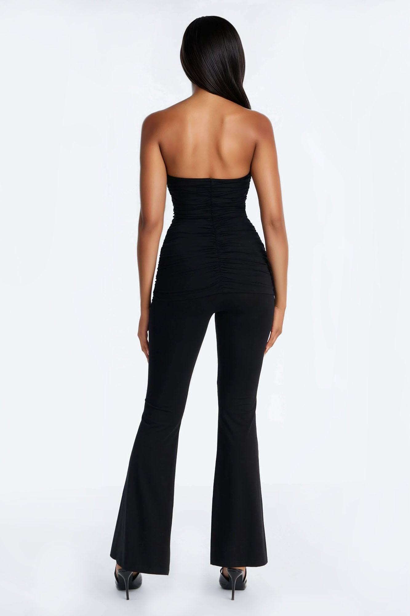 Adalina Ruched Flare Leg Pant Set - Black Female