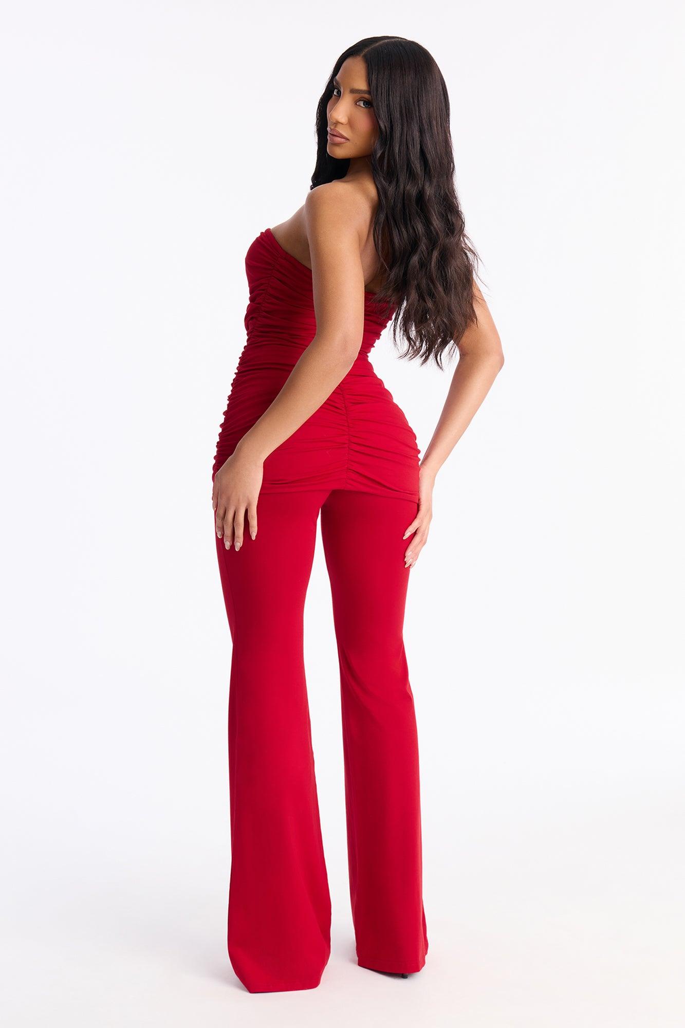 Adalina Ruched Flare Leg Pant Set - Red Female