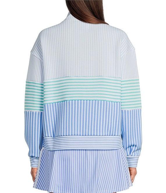 From Addison Bay, this sweatshirt features:Stripe printV-neckLong sleeveQuarter zip closureLong sleeveApprox. 18.25"Polyester/spandexMachine wash / line dryImported.