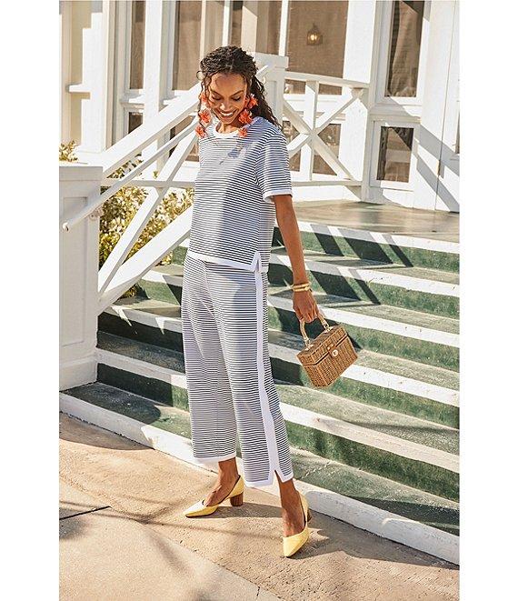 Addison Bay Lennon Stripe Print Wide Leg Coordinating Pull-On Crop Pants