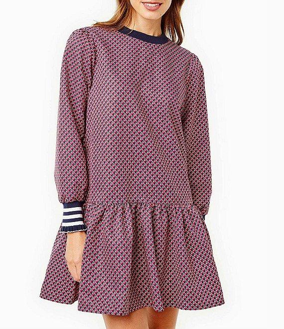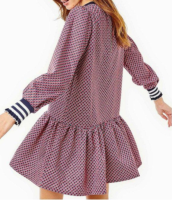 Addison Bay Vine Geometric Print Crew Neck Long Sleeve A-Line Zip Back Dress