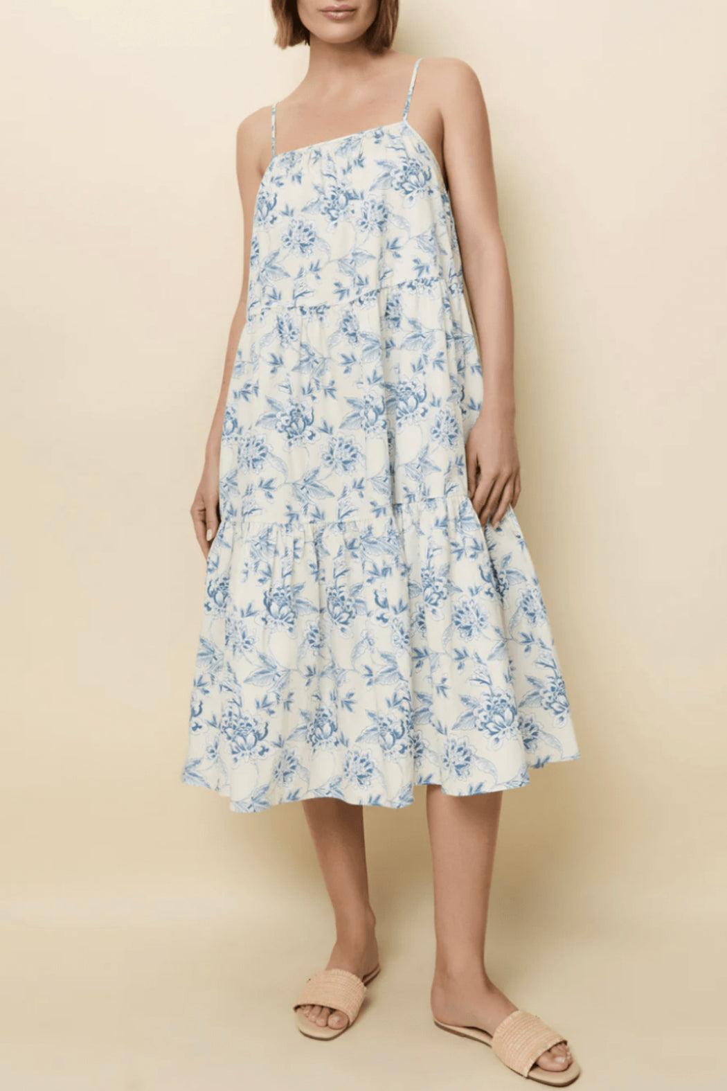 The Addison Dress is a perfect blend of elegance and ease. Crafted from luxurious sateen poplin, it features a smooth, crisp texture with a silky, lustrous finish. This midi-length dress is designed with adjustable spaghetti straps for a customizable fit and front pockets for added functionality. The 3-tier design and slight shirring at the neckline and back create a flowy, feminine silhouette.