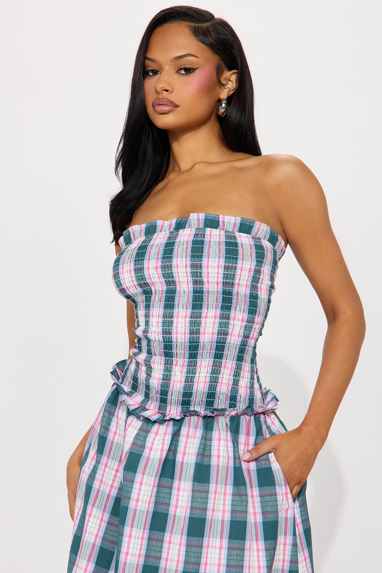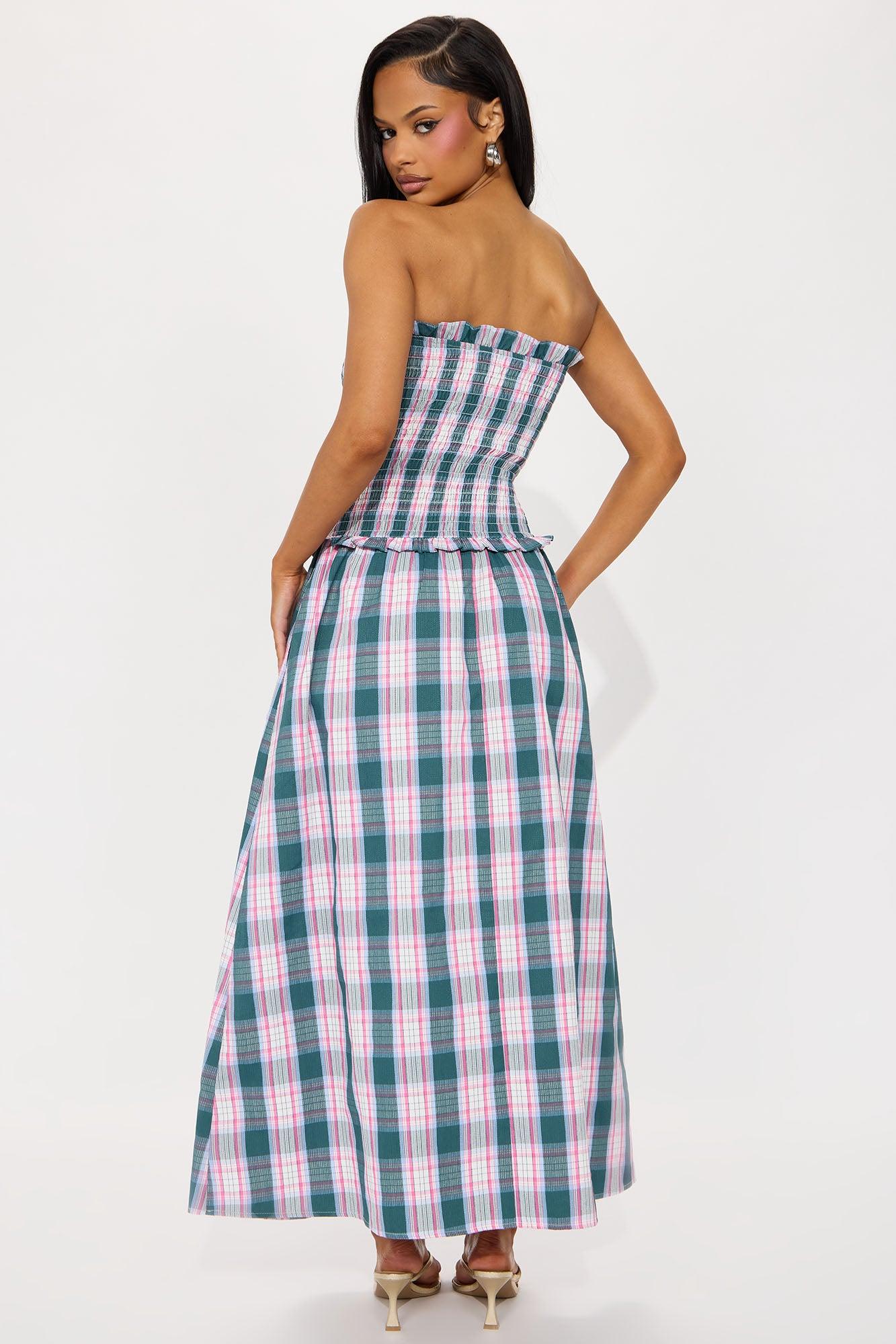 Addison Plaid Maxi Dress - Pink/combo