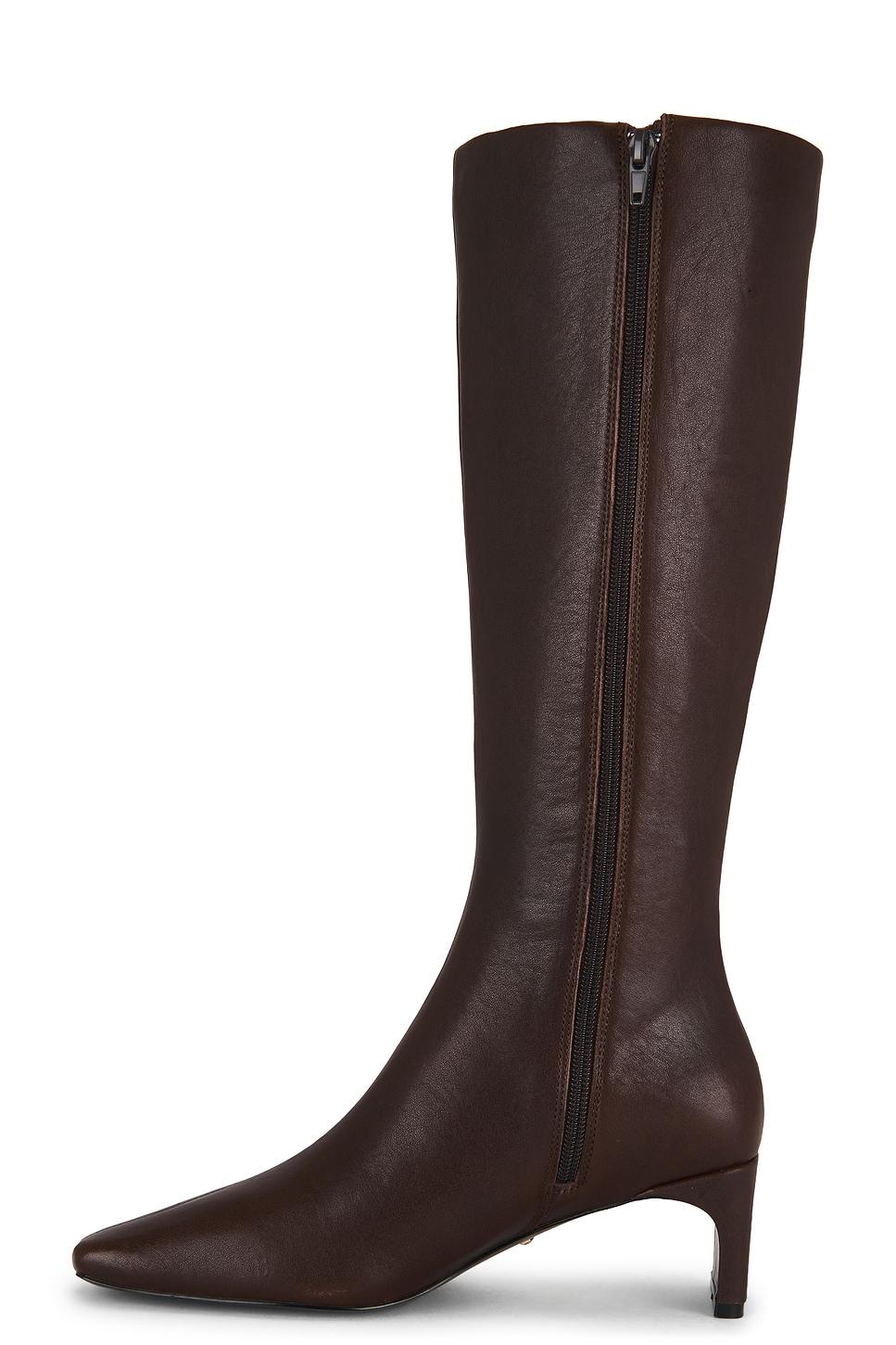 Leather upper with manmade sole. Made in China. Side zipper closure. Pointed square toe. Approx 63.5 mm/ 2.5 inch heelApprox 368.3 mm/ 14.5 inch shaftShaft measures approx 15.5" in circumference. Revolve Style No. RAYE-WZ2988. Manufacturer Style No. RYSH10128 R25.