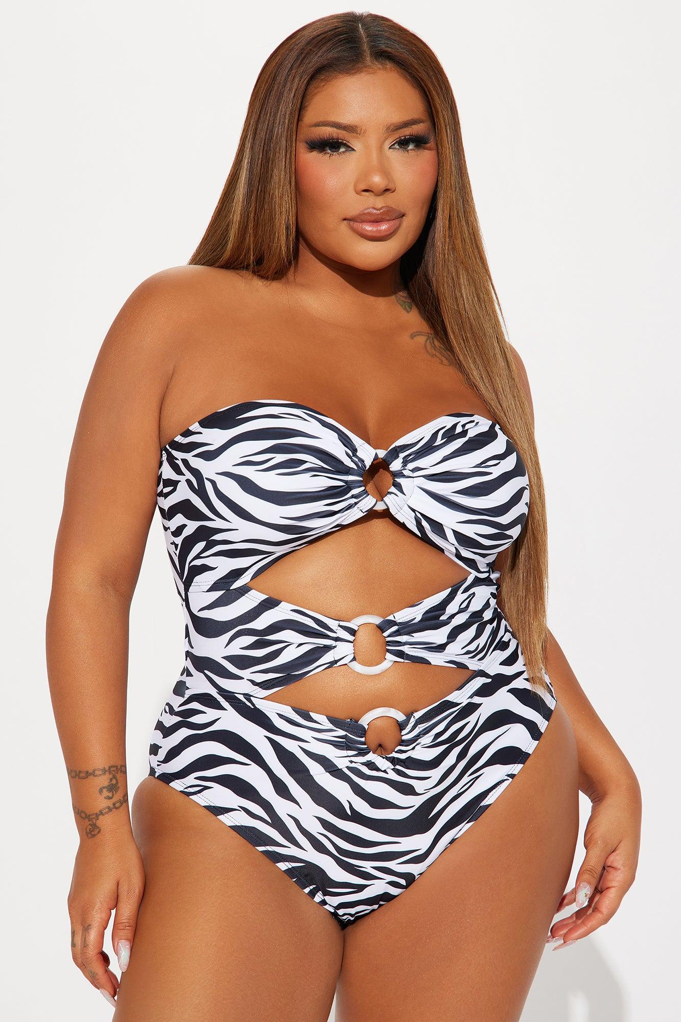 Available In Black/White. 1 Piece Ensemble Swimsuit Strapless Sweetheart Neckline Removable Cups O-Rings Cutouts Disclaimer: Print Placement May Vary Full Stretch Final Sale Shell 85% Polyester 15% Spandex Lining 95% Polyester 5% Spandex Imported California Proposition 65WARNING: Cancer and Reproductive Harm - www.P65Warnings.ca.gov.