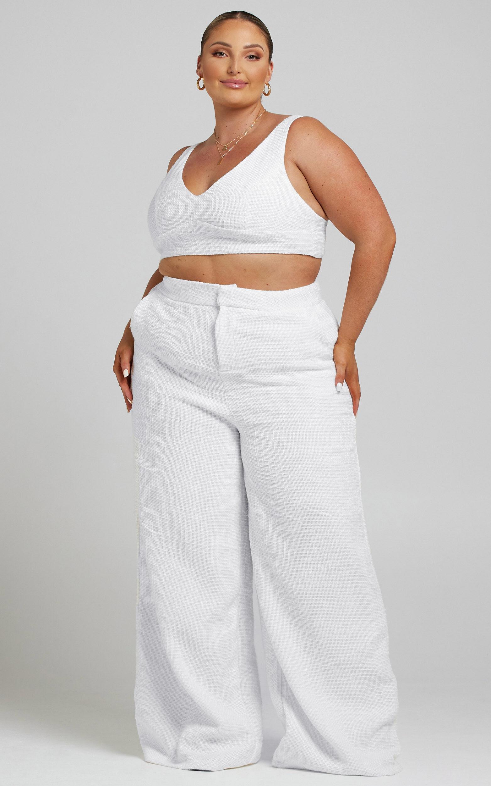 Channel major Elle Woods energy in the Adelaide Two Piece Set. It’s comprised of a crop top and wide leg pants made from a stunning soft tweed fabric. The top is shaped with slender straps, a deep V-neckline and secures with a line-up of concealed hook and eye closures. The pants take a leg-lengthening form in their high-rise fit and loose wide leg style. Pair it with some heeled sandals and a mini bag to match for a chic look!Shop all Showpo.Product DetailsTopCrop topHook and eye closure on the backFixed strapsV-necklineFully linedPantsZip and hook & eye closure on the frontHigh riseWide legsFully linedTwo pocketsSize & FitSize XS / 6 top length: 32cm / 12.6in (incl. straps)Size XS / 6 pants length: 114cm / 44.9inFirst model is wearing size M / 10 AU / 6 US / 10 UK / 38 EUFirst model's height is 165cm / 5'5"Second model is wearing size XXXL / 18 AU / 14 US / 18 UK / 46 EUSecond model's height is 165cm / 5'5"This style runs small, we recommend sizing up!Material & CareMade with 100% polyester, no stretchFully lined in 100% rayon, no stretchWash with similar colours, wash inside out, cool iron if required, iron on reverse
