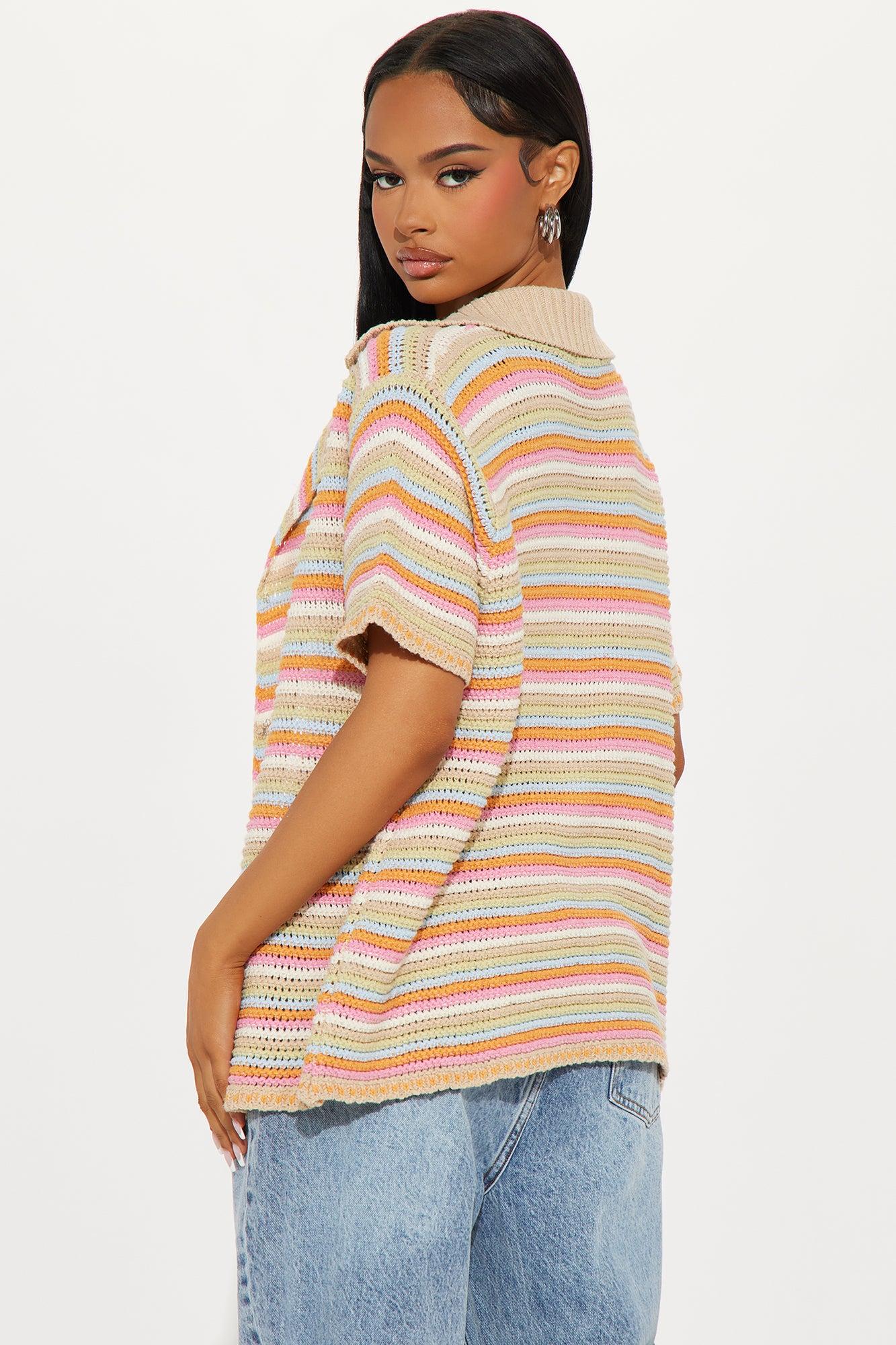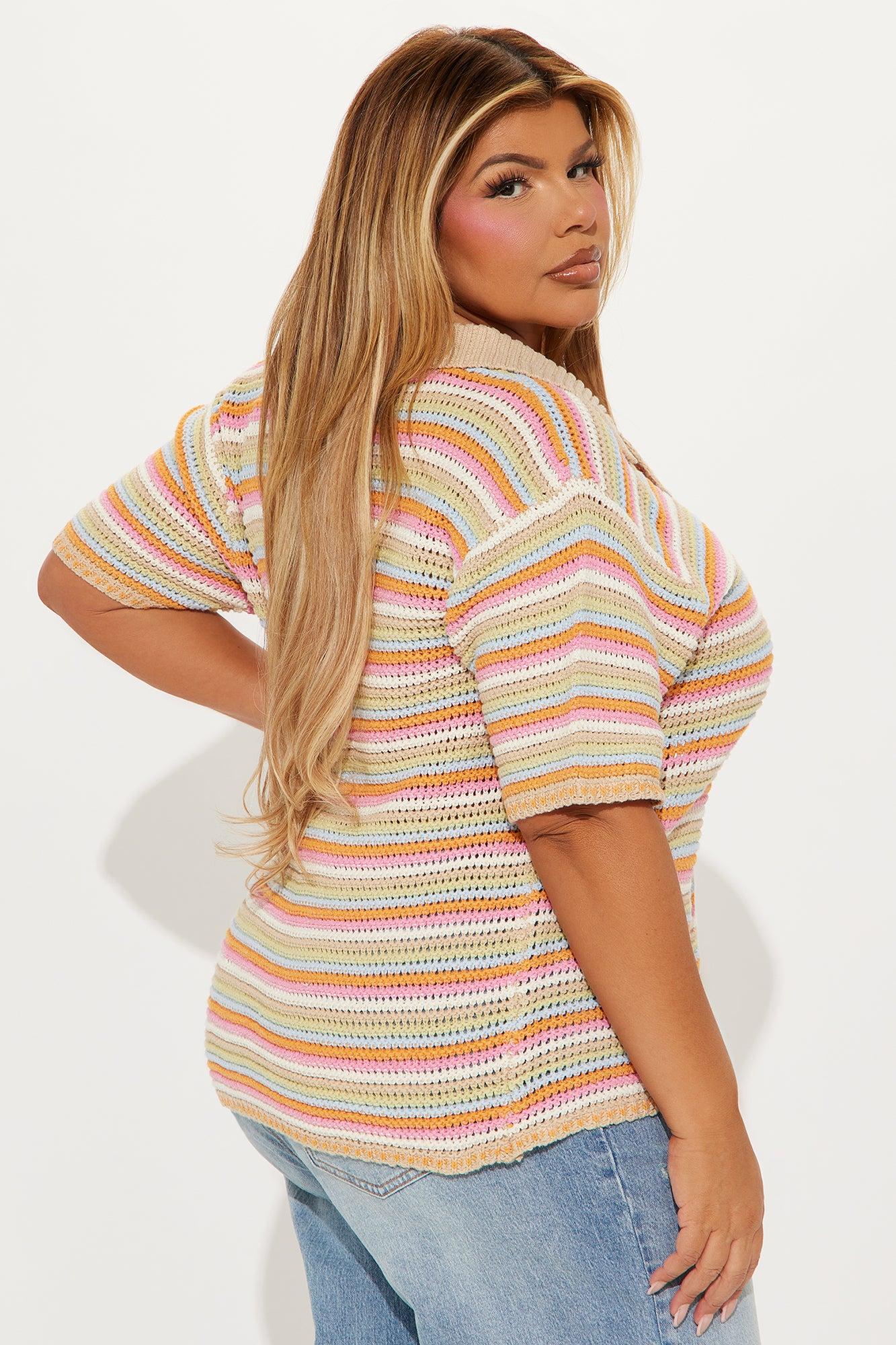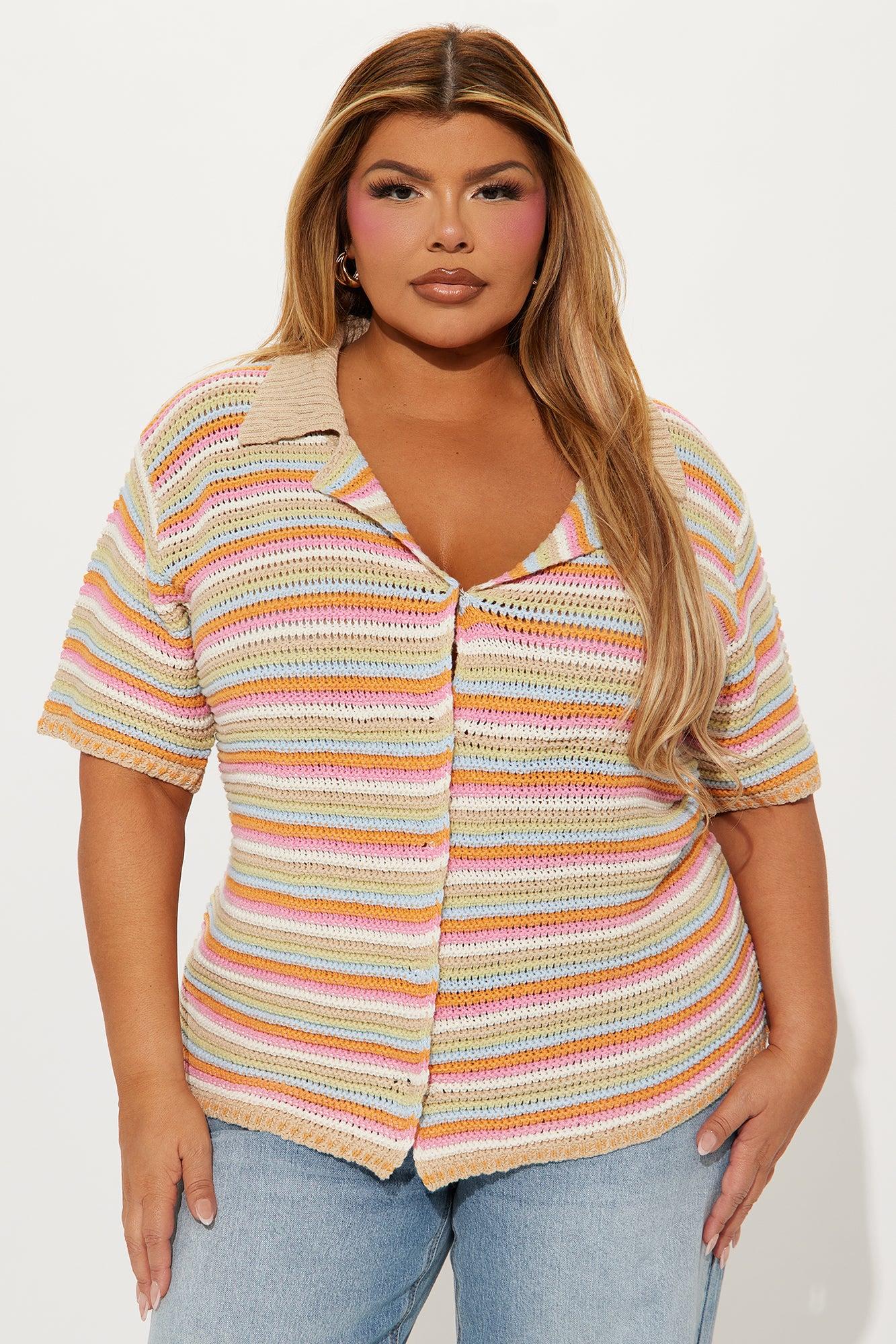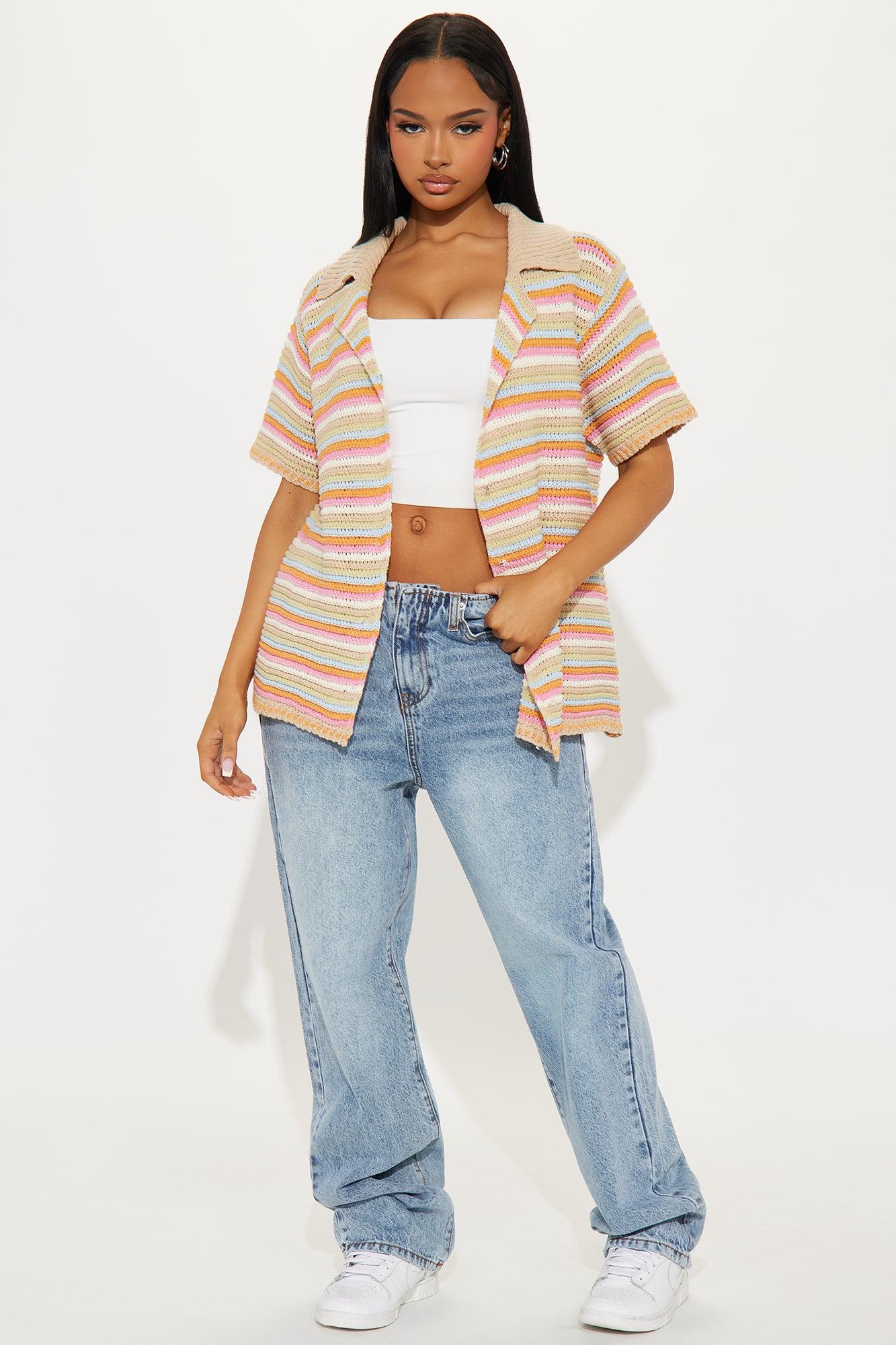 Adeline Oversized Striped Crochet Shirt - Multi Color