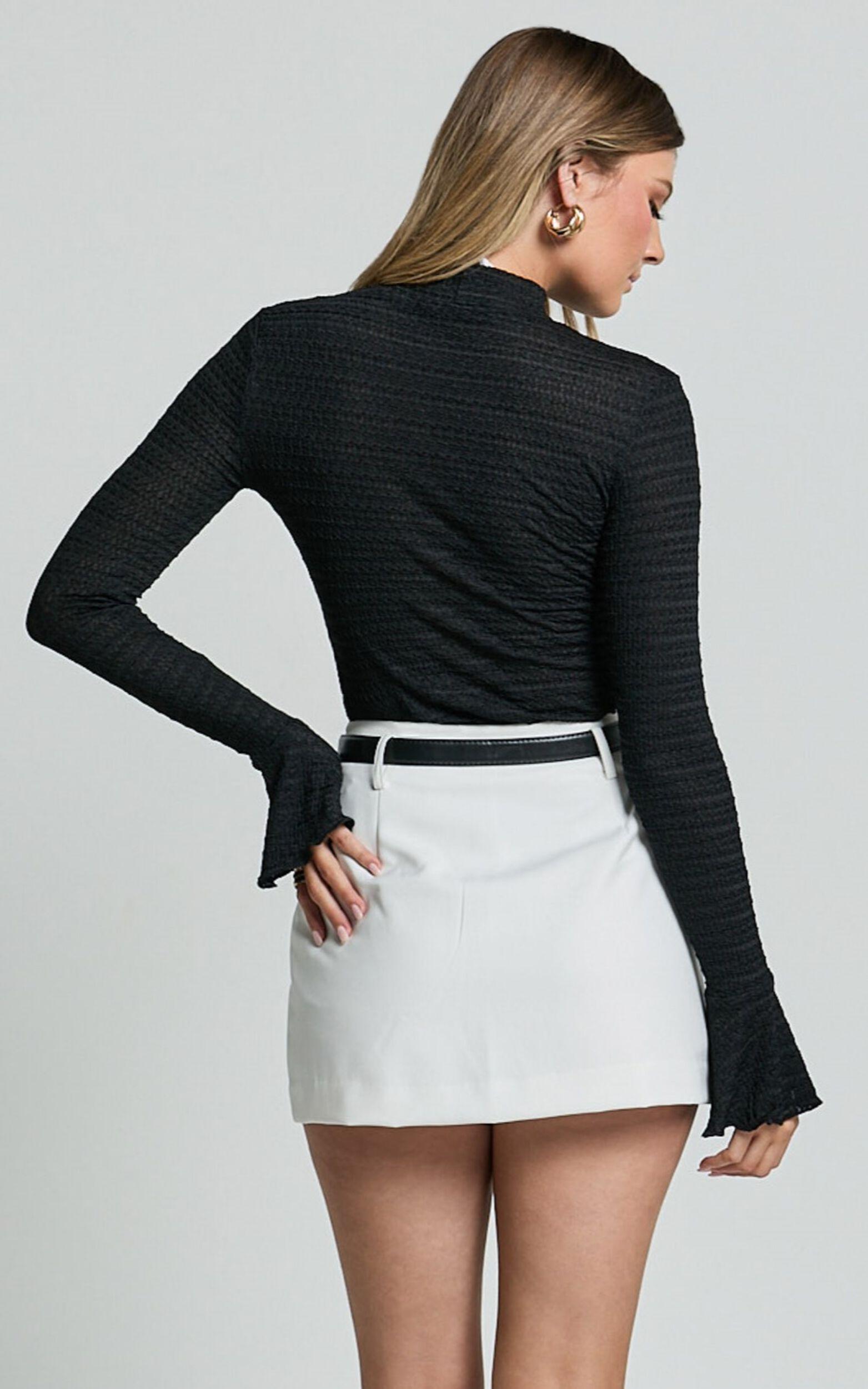 Adeline Top - High Neck Flare Sleeve Top in Black