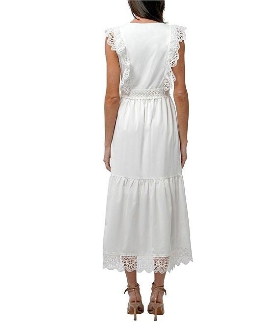 Adelyn Rae Adaline Lace Woven V Neck Sleeveless A-line Midi Dress