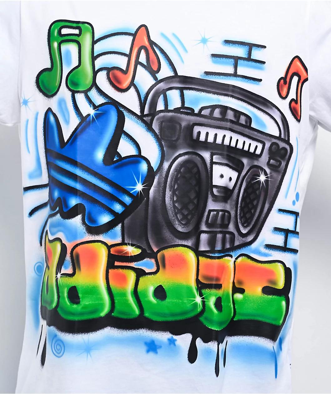 Add bold streetwear style to any outfit with the Airbrush t-shirt from adidas. The white tee features faux-Airbrush artwork of a boombox beside colorful branding for an eye-catching modern look. Made from 100% cotton, the shirt offers a comfortable l