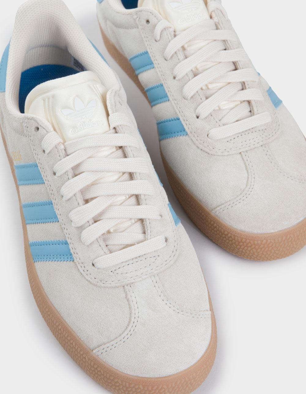 adidas Gazelle ADV Shoes. A skateboarding version of the classic adidas Gazelle sneakers, these shoes have higher foxing tape and a super grippy outsole. A double-layered toe adds durability, while a molded sockliner offers an elevated fit. Lace closure. Premium suede upper. Adituff toe reinforcement and double-layered toe for increased durability. Gazelle skateboarding shoes. Rubber outsole. Geoflex outsole for superior grip. Signature three stripe overlays. Padded collar. Textured sole. Imported.