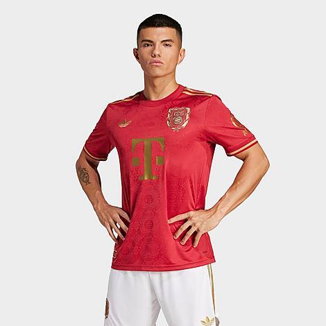 Celebrate the 125th anniversary of FC Bayern in this special adidas soccer jersey. Showing off an eye-catching design inspired by the club's iconic stadiums and crests, it uses golden accents and intricate detailing to commemorate an important milestone. Moisture-managing AEROREADY keeps you comfortable and a special anniversary crest displays your devotion.