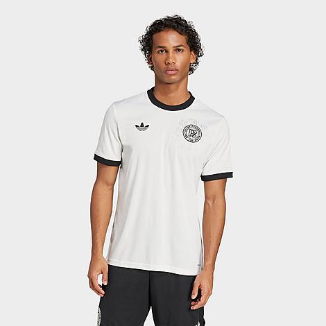 Size & Fit Slim fit is tailored and sleek Made from Sustainable Materials This product is made with about 100% recycled fibers to turn a problem into performance. 100% polyester Product Features Replica soccer jersey engineered to look like what the pros wear during matches Soft jacquard fabric with subtle pinstripes and a tonal eagle for lightweight comfort and heritage energy Germany heat-applied anniversary crest celebrates 125 years of the German national team Sign-off above the hem nods to the plaque commemorating the DFBs foundation in Leipzig AEROREADY technology wicks sweat away from the body to keep you fresh and dry Ribbed collar for a stay-put fit while on the move Machine wash The adidas Germany Anniversary Soccer Jersey is imported. Celebrate 125 years of soccer excellence in pure adidas style with the Mens adidas Germany Anniversary Soccer Jersey. Drawing inspiration from kits worn by Germanys national team in their storied history and engineered for contemporary player performance, this jersey pays homage to the past with subtle pinstripes and a tonal eagle woven into the soft and airy jacquard fabric embedded with AEROREADY technology so you can represent the prestigious national team while sweating through intense matches. Size: Small. Color: White. Gender: male. Age Group: adult. Pattern: Striped/Pinstripe. Material: 100% Polyester/Fiber/Jacquard. Adidas Mens Germany Anniversary Soccer Jersey Shirt in White/Cloud White Size Small 100% Polyester/Fiber/Jacquard