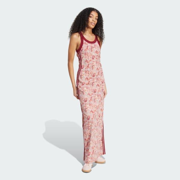 Long on color and lively personality, this adidas maxi dress is ready for sunny days when being easygoing is the order of the moment. Made from a soft and lightweight fabric with some stretch for comfort, its slim fit hugs your body, while the long length offers a sporty yet dramatic silhouette. Created in partnership with the luxury department store Liberty London, the floral print is a celebration of nature's beauty and vibrancy.