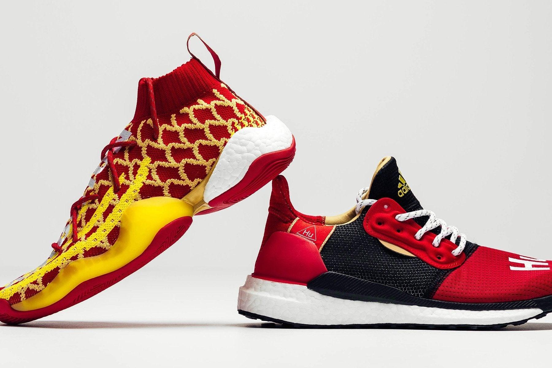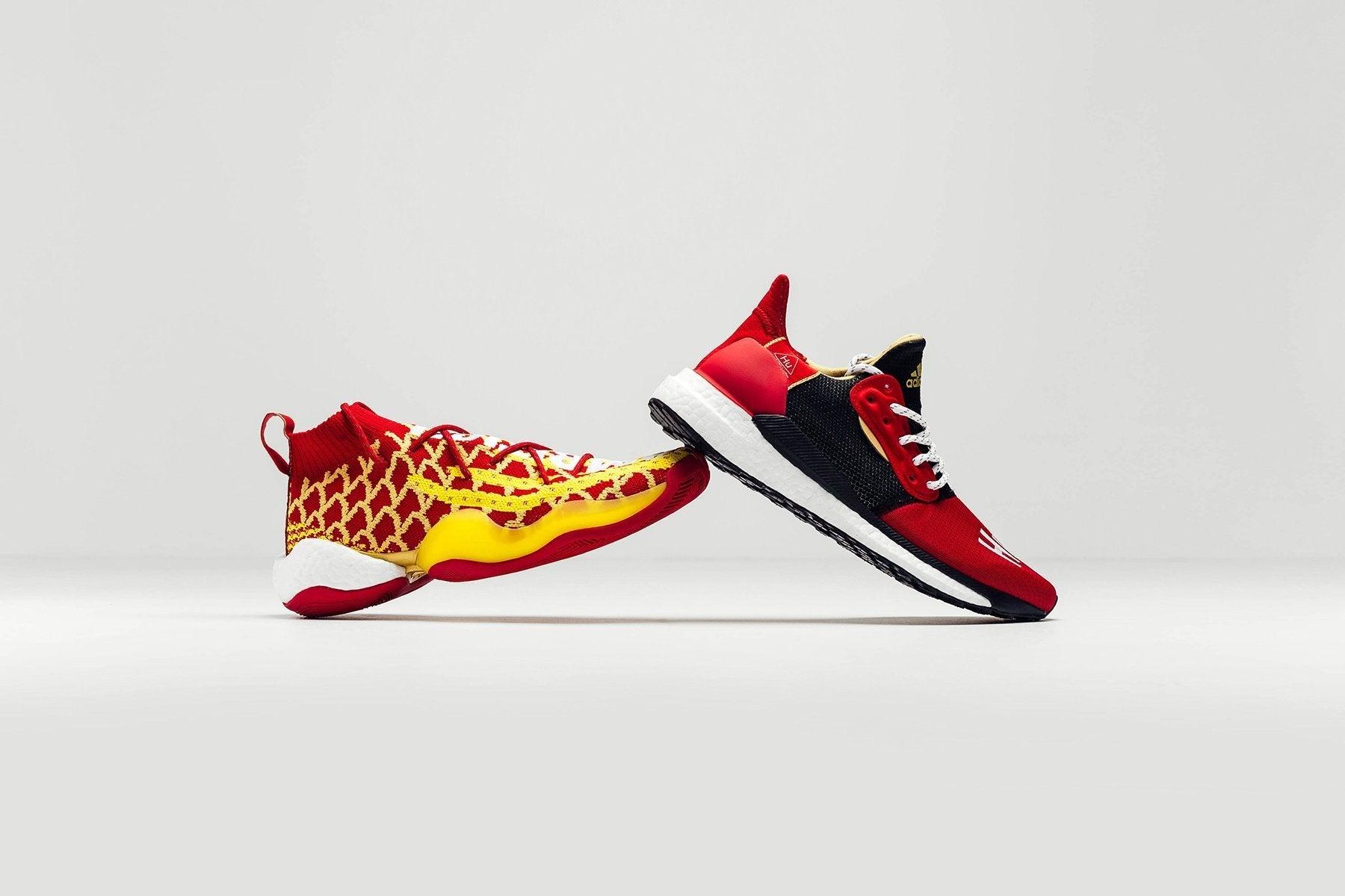 Maintaining their commitment to inspiring creativity though sport and design, Pharrell Williams and adidas Originals deliver the PW CNY pack, featuring special Chinese New Year make-ups of the SolarHu Glide and BYW models. Pictured is the Adidas Originals x Pharrell Williams BYW in Scarlet. Knitted uppers Pull tab Boost midsole Rubber outsole All sizes are listed in U.S. Men's sizing unless stated otherwise Style no: EE8688 2019/01/26 15:00:00 Whats-New