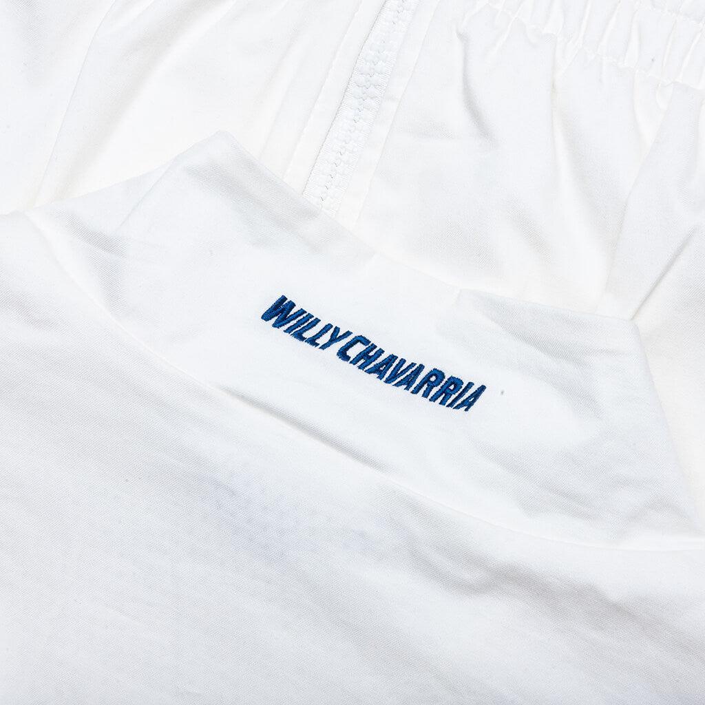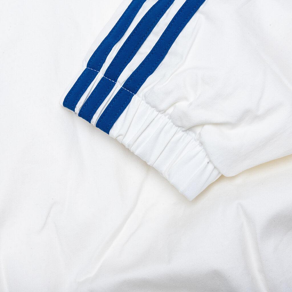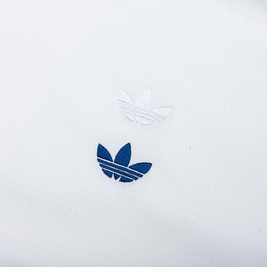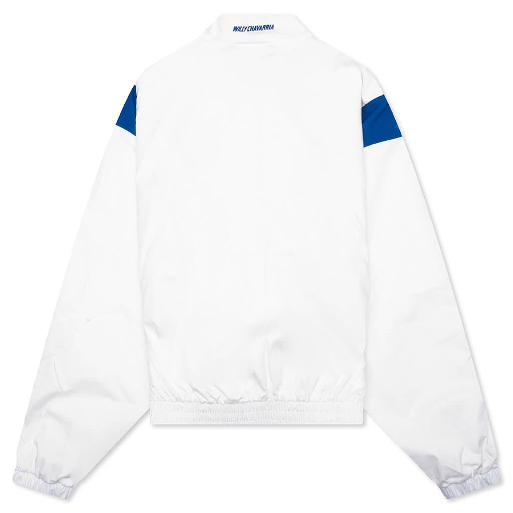A clean fusion of sport and sophistication, this tracktop from the Adidas x Willy Chavarria collection is crafted from a stretch-infused cotton-blend for elevated comfort. It features a full zip closure, ribbed cuffs, and kangaroo pockets, with subtle Trefoil branding for a minimalist finish. Cotton blend Full zip closure Kangaroo pockets Ribbed cuffs Trefoil branding Style No: KC0539