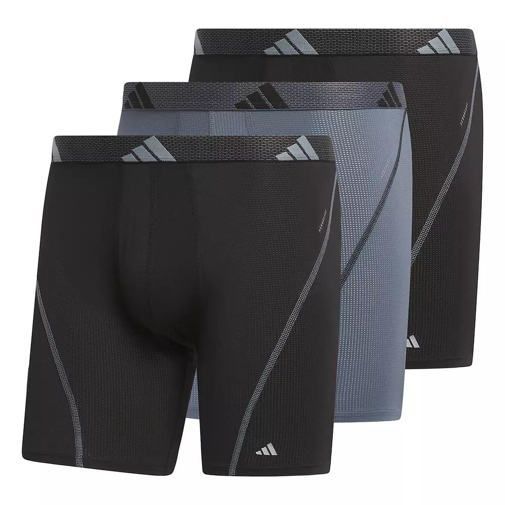 Instant upgrade. Elevate your underwear collection with these comfortable mens performance mesh boxer briefs from adidas. Instant upgrade. Elevate your underwear collection with these comfortable mens performance mesh boxer briefs from adidas.Click on this MENS GUIDE to find the perfect fit and more! 3-pack Performance mesh fabric delivers maximum ventilation Mesh-lined pouch provides support and breathability Material wicks away moisture to keep you dry and cool Made with recycled polyester Smooth stitching Fly frontFIT & SIZING Regular fit 5-inch approximate inseam No-ride-up leg construction keeps fit consistent and prevents bunchingFABRIC & CARE 86% recycled polyester, 6% polyester, 8% spandex Machine wash ImportedSUSTAINABILITY FEATURES 86% Recycled Polyester, 6% Polyester, 8% Spandex Contains recycled materials Global Recycled Standard Certified Global Recycled Standard certified polyester Size: 3XL. Color: Black. Gender: male. Age Group: adult.
