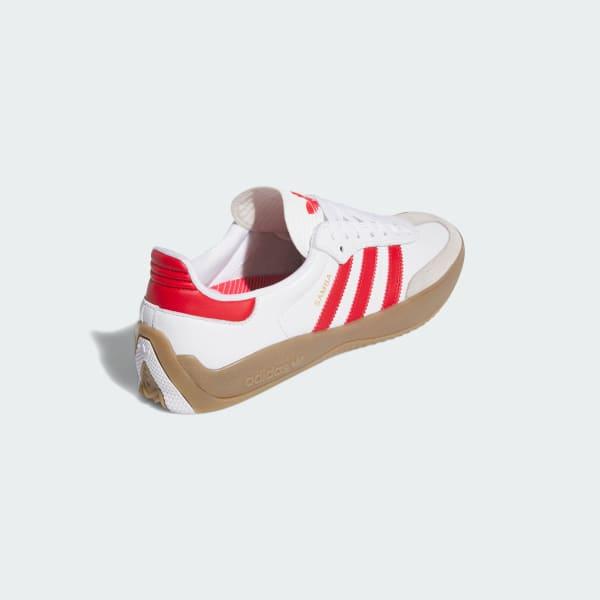 Merging the iconic Samba silhouette with Lucas Puig's signature wavy sole, Puig Samba Shoes double down on style. Pulling from the Samba's upper, the Puig Samba features the iconic T-toe construction reinforced for skateboarding, as well as an updated tongue and double-stitched eye stays. Rendered in a semi-translucent gum rubber, the staple Puig outsole complements the Samba's lines, offering a grippy, flexible cupsole construction and stylized heel branding.