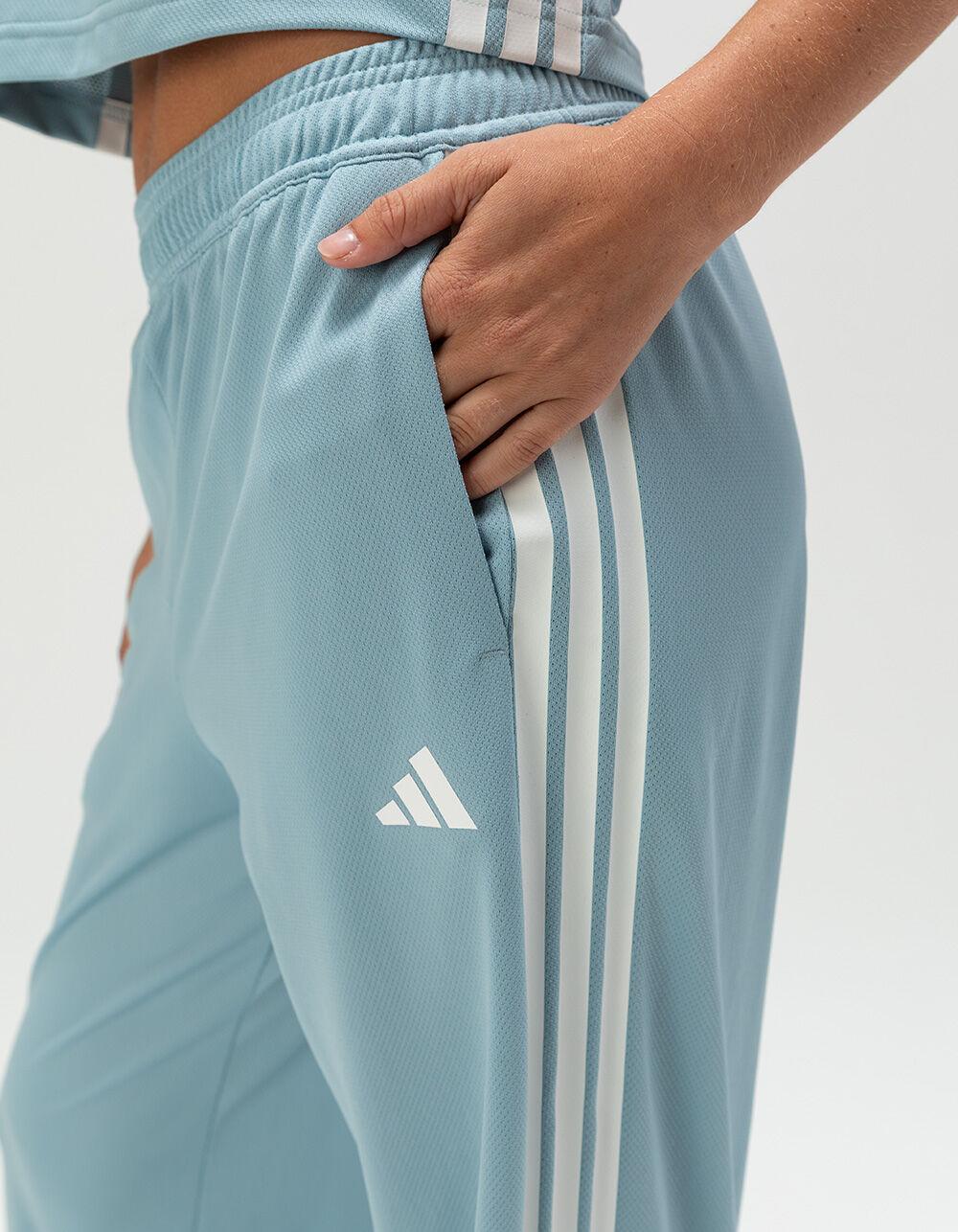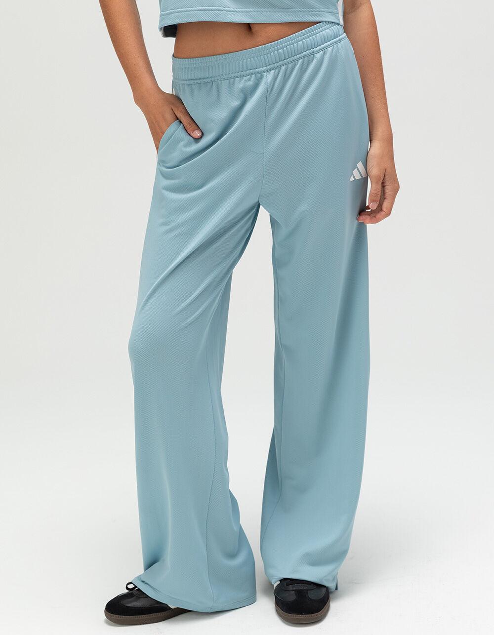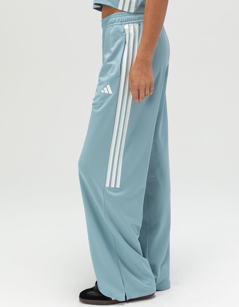 adidas Tiro Cut 3-Stripes Mesh Wide Leg Pants. Wide-leg mesh pants, inspired by football and made with recycled materials. These adidas pants take the Tiro football cut and style it for everyday wear. The loose fit and wide legs let you move freely, and mesh fabric keeps things light and breathable. Signature 3-Stripes and a 3 Bar Logo nod to heritage. With an elastic waistband and drawcord, these are pants you'll want to live in. Side pockets. Side hem slits. Drop crotch. 100% Recycled Polyester. Machine wash. Imported.