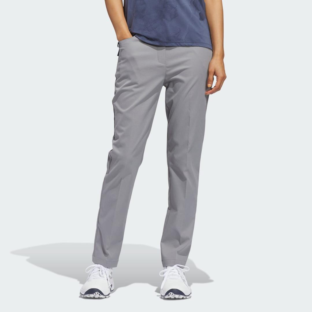 Enjoy the performance look and feel of these adidas golf pants. Lightweight stretch fabric supports your game from first tee to final putt. The mid-rise cut and slim fit stay close as you swing and bend while a water-repellent finish lets you play through occasional showers.