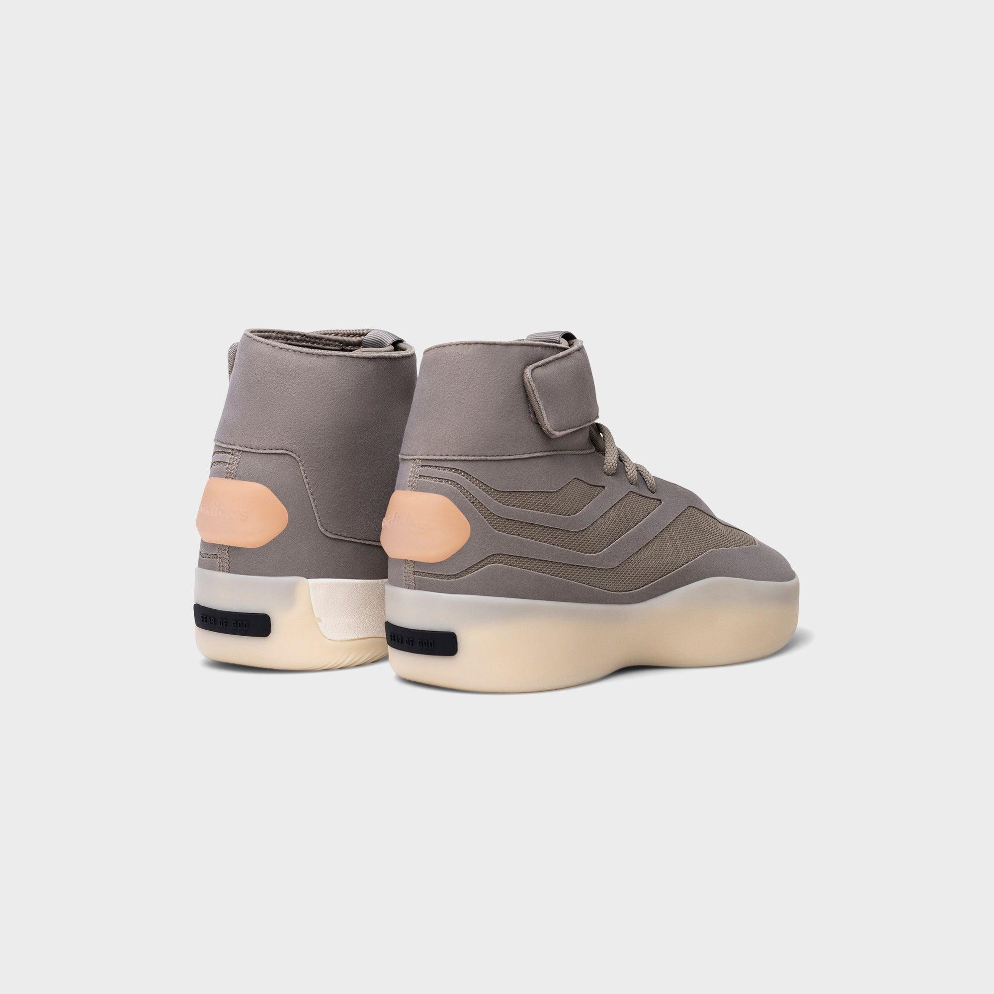adidas x Fear of God Athletics II Basketball High silhouette Mesh upper Suede overlays Padded collar Tongue pull Rope laces Padded ankle strap Branded TPU heel TPU shank LIGHTSTRIKE cushioning Semi-grippy translucent rubber outsole Style: aajq8483 Color: Putty Beige Material: Mesh / Suede / TPU