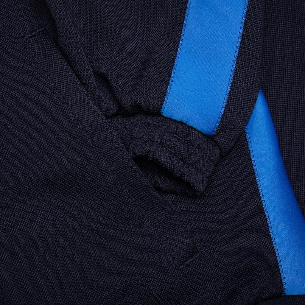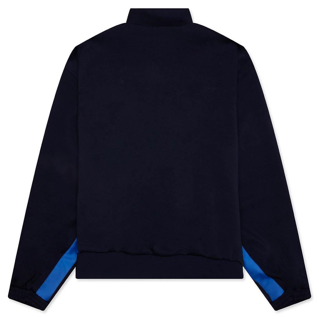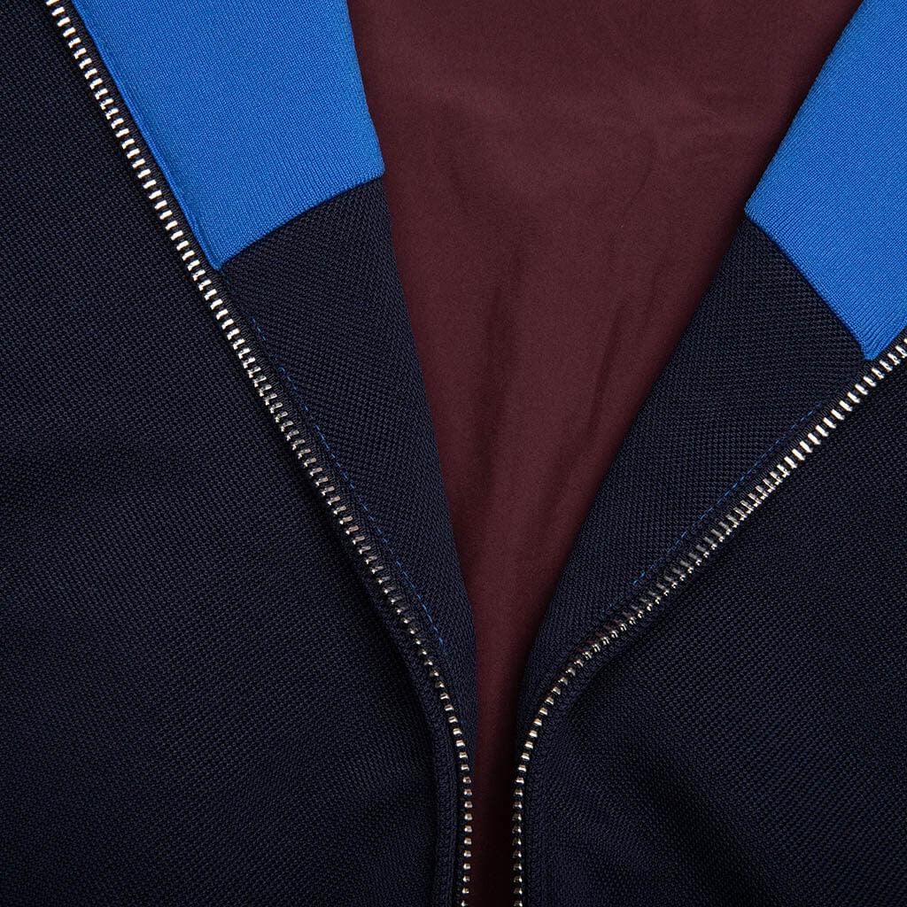 The Adidas x Wales Bonner Pique Track Top blends athleticism and craftsmanship. Made with polyester and elastane, this jacket offers comfort and flexibility. Designed with a navy blue colorway, complemented by bright blue satin taping on the bottom of the sleeves and collar. Embroidered Adidas x Wales Bonner logos appear on the front at the chest, finishing the look. 96% polyester, 4% elastane Loose fit Full zipper closure Stand-up collar Side pockets Embroidered Adidas x Wales Bonner detaling Style No: JM8213