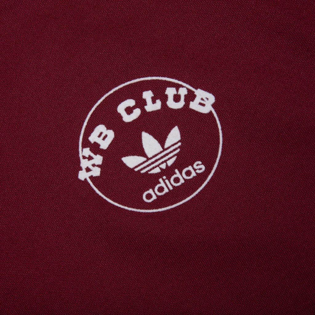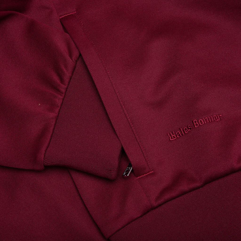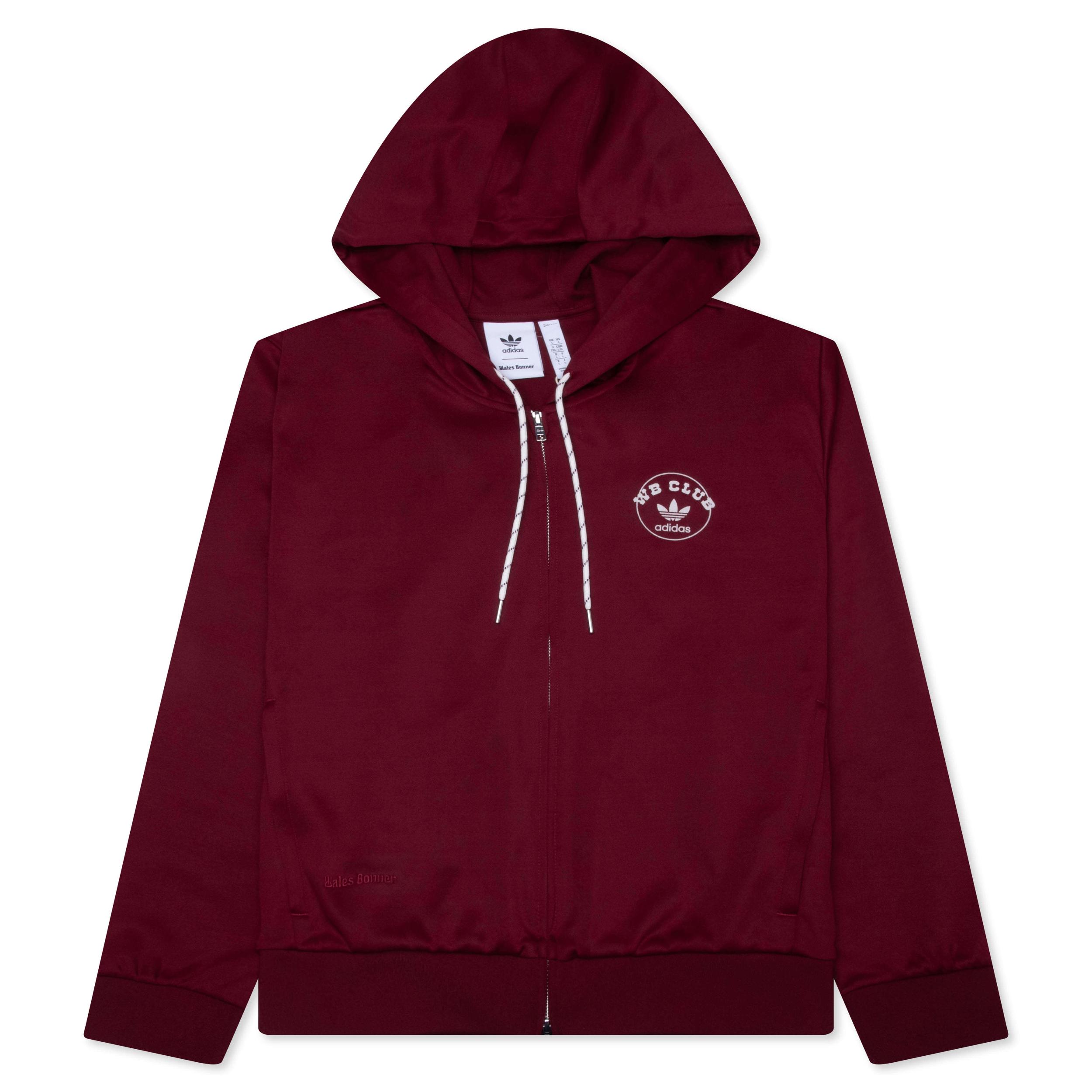 The Adidas x Wales Bonner Track Hoodie blends athleticism and craftsmanship. Made with polyester and cotton, this tee offers comfort and breathability for a slim fit. Featuring a full zipper closure with a drawcord-adjustable hood for preferred styling, while side pockets allow extra utility. Designed with a Collegiate Burgundy, giving a cities by the sea look inspiration, complemented by Adidas and Wales Bonner branding on the front. 61% polyester, 39% cotton Slim fit Full zipper closure Ribbed cuffs and hem Side pockets Adidas x Wales Bonner branding details Style No: JM8298