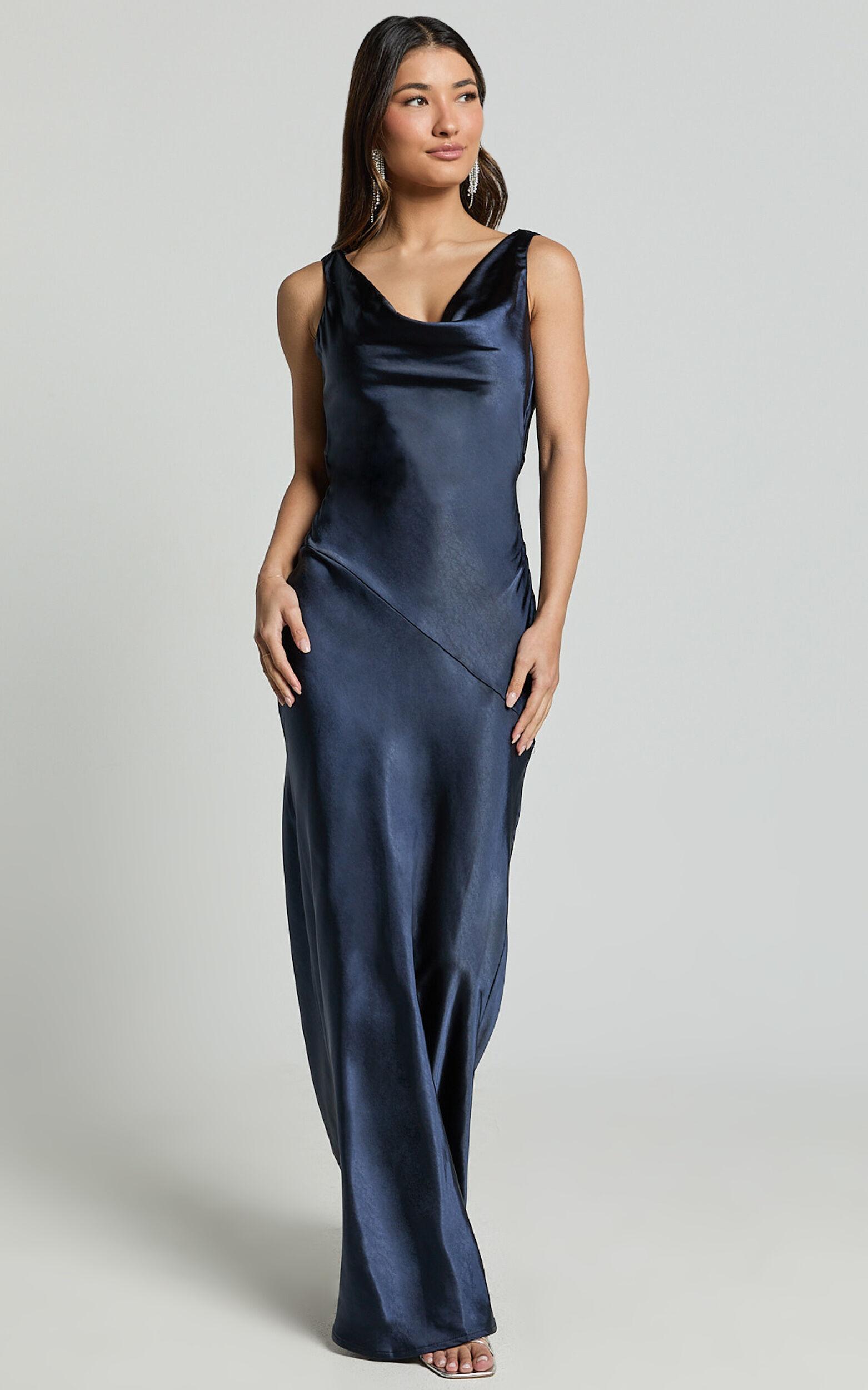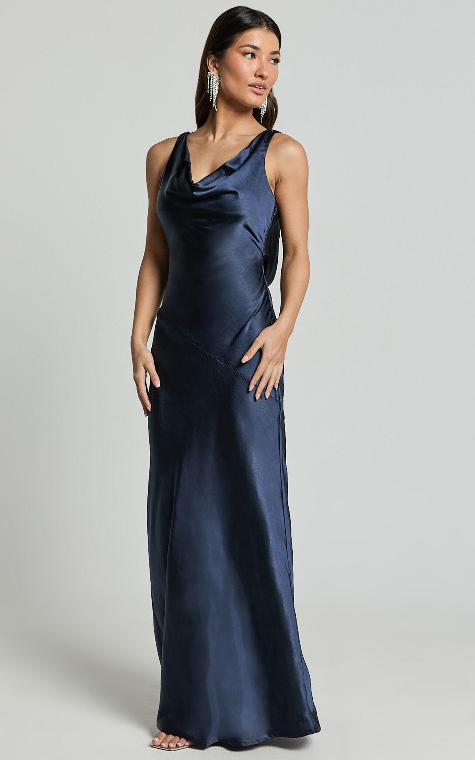 Discover the perfect look in our Adilah Maxi Dress - the embodiment of elegance and grace in a sleek Navy hue. This stunning sleeveless number offers a sophisticated blend of class and style, designed specifically for the modern woman who commands attention. Whether you're part of a bridal squad or making an entrance at a high-profile event, this formal dress ensures you shine with an unmatched poise.Product Details:Satin fabricCowl necklineFormal, BridesmaidsMaxi lengthSleevelessPolyester materialMaterial and Care100% PolyesterLow / No stretch