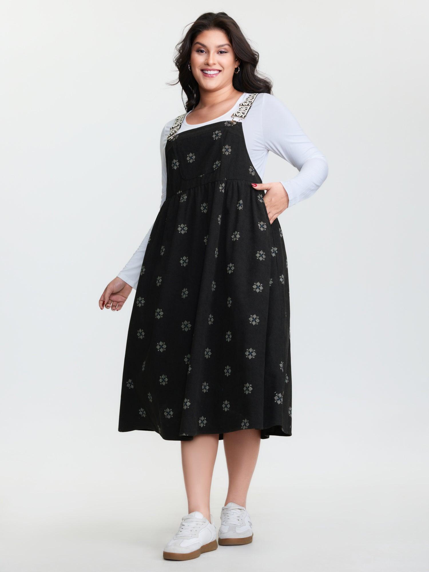 Shop Adjustable Floral Midi Overall Dress now and redefine your style with confidence at BloomChic. Tailored for mid and plus-size women. This trendy Dress, sizes 10-30. You can never go wrong with BloomChic Dresses. Color:Black Flower;Style:Leisure;Neckline:Non;Sleeve Type:Sleeveless;Prints:Bohemian print;Details:Contrast;Pocket:Side seam pocket;Belt:No-belt;Closure Type:Non