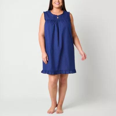 Adonna Womens Plus Sleeveless Keyhole Neck Nightgown