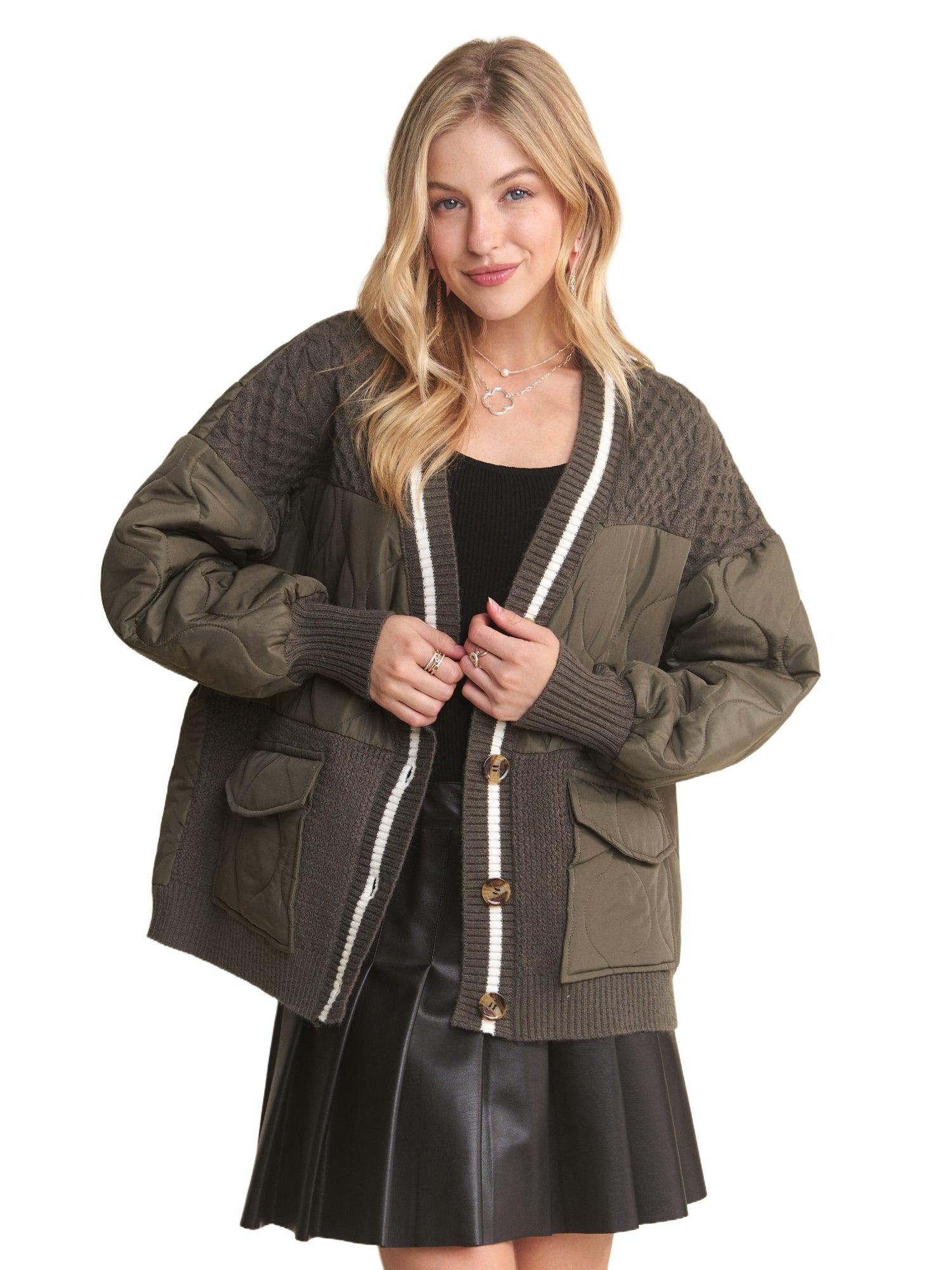 Description - Adora Quilted Cardigan: Cozy up in style with our luxurious quilted cardigan. Crafted from premium materials, it offers exceptional warmth and comfort. The stylish quilting pattern adds a touch of sophistication, making it perfect for any occasion. Experience the perfect blend of fashion and function.