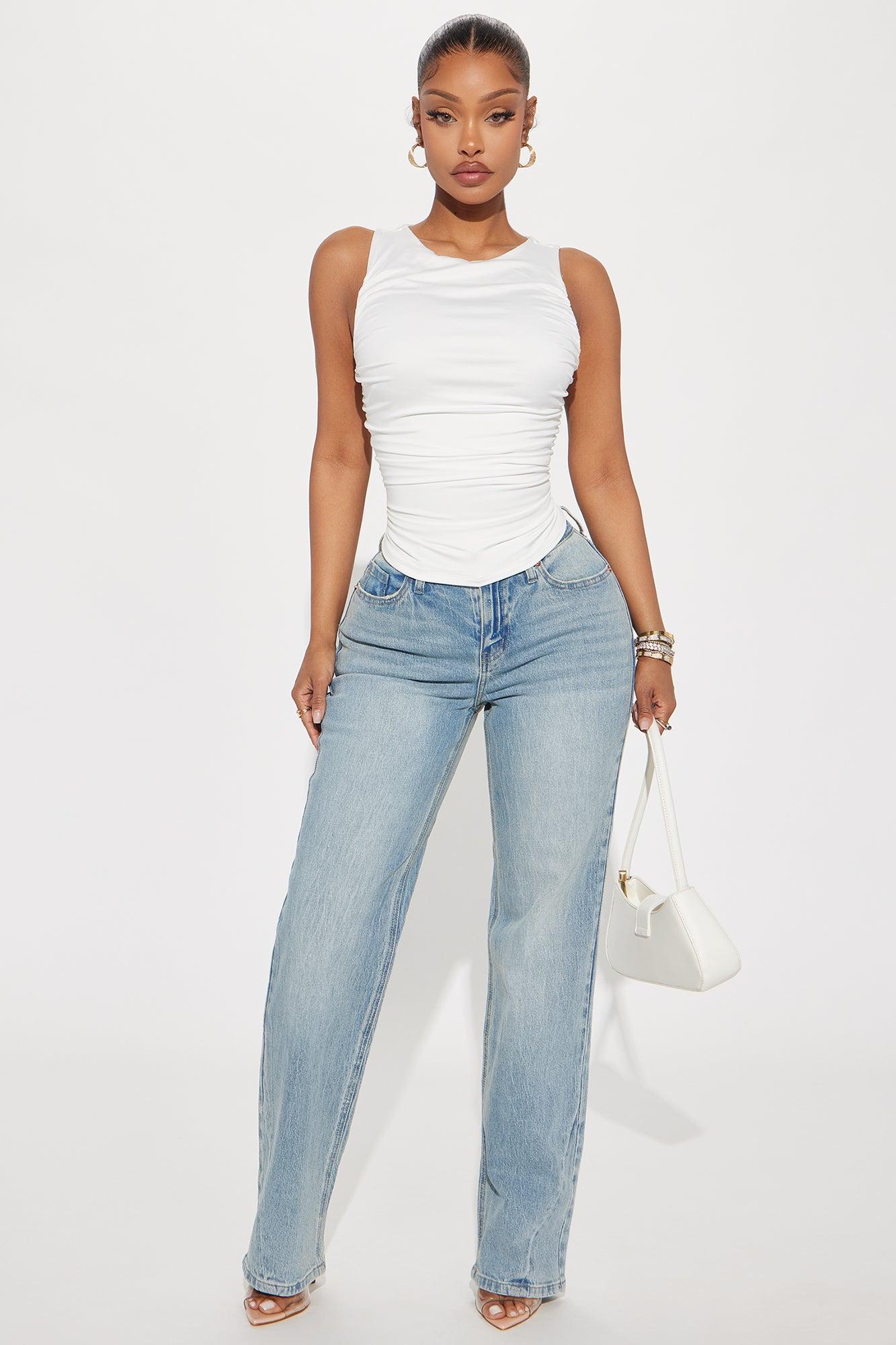 Available In Black And White. High Neck Top Stretch Ruched 95% Polyester 5% Spandex Imported