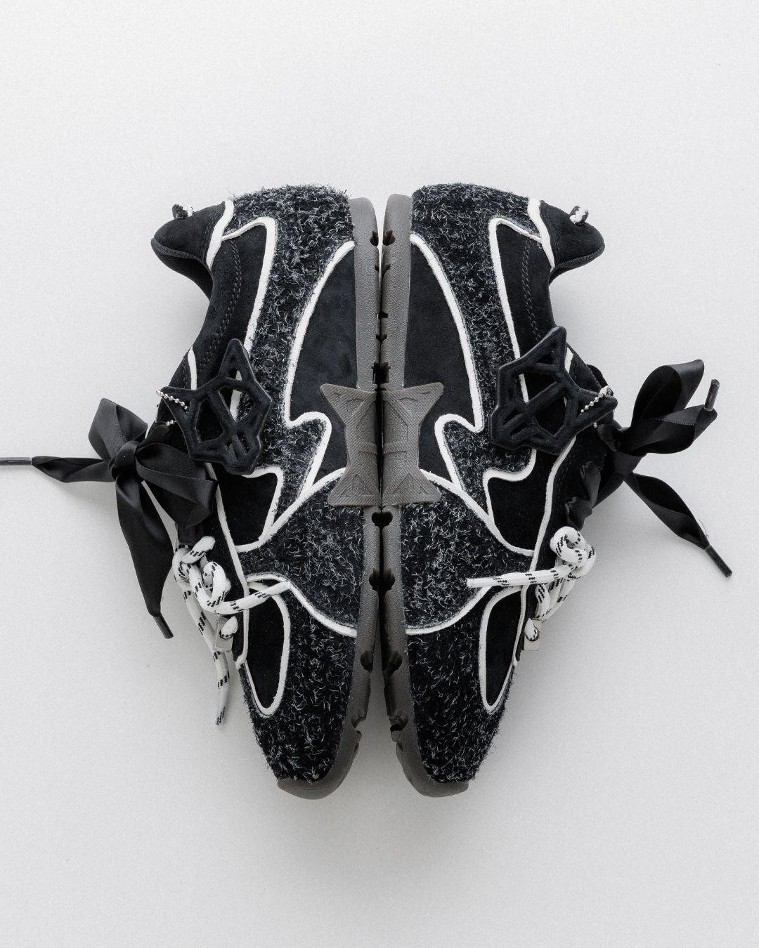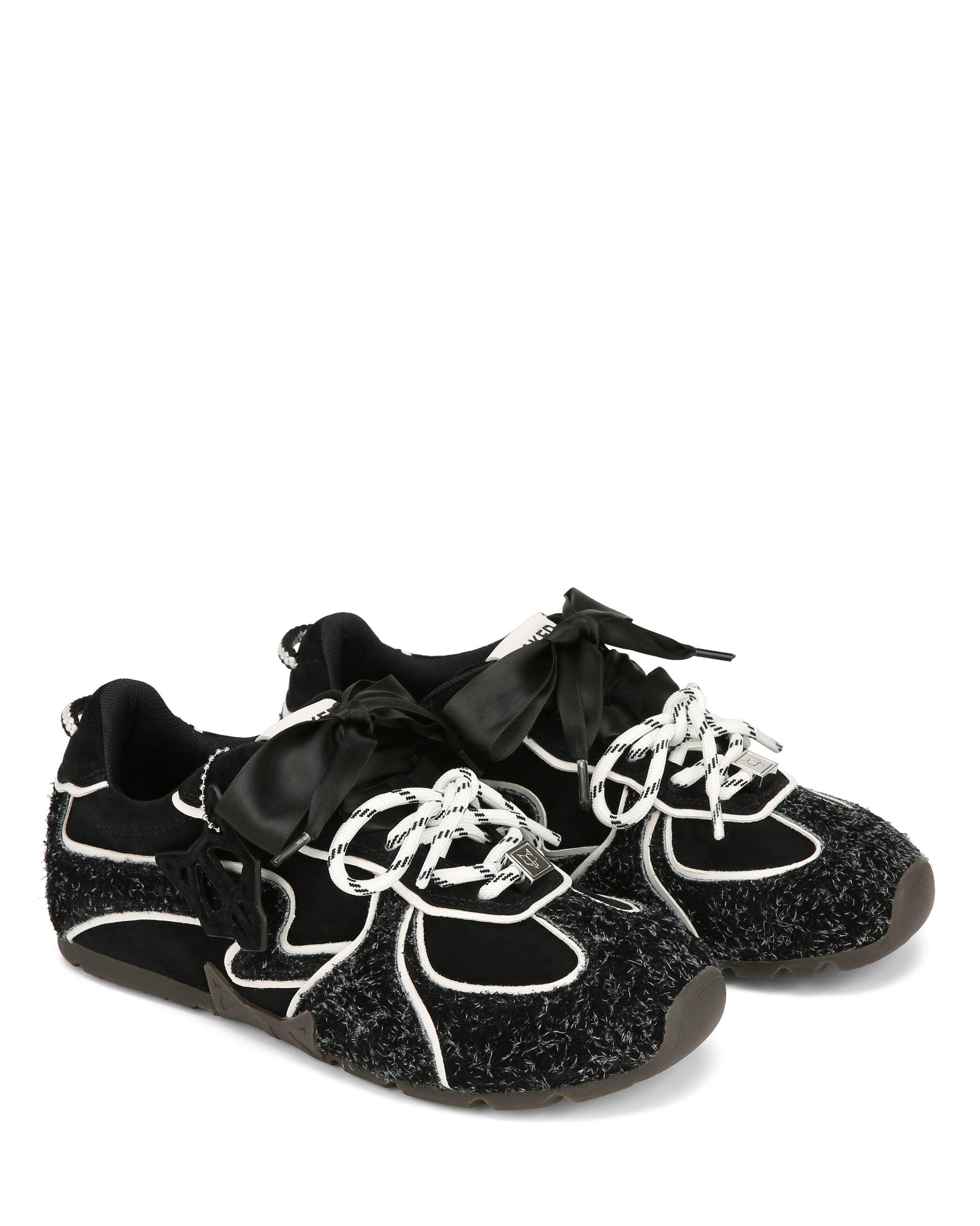 The Adored Black Hairy Suede sneaker integrates cutting-edge design with high-performance features. Equipped with dual silk satin ribbon lace and round cotton lace, it ensures a secure fit and streamlined wear. Its upper, made from durable double dyed suede upper, delivers both enhanced resilience and a distinctive textured aesthetic, making it ideal for everyday use with a technical edge.