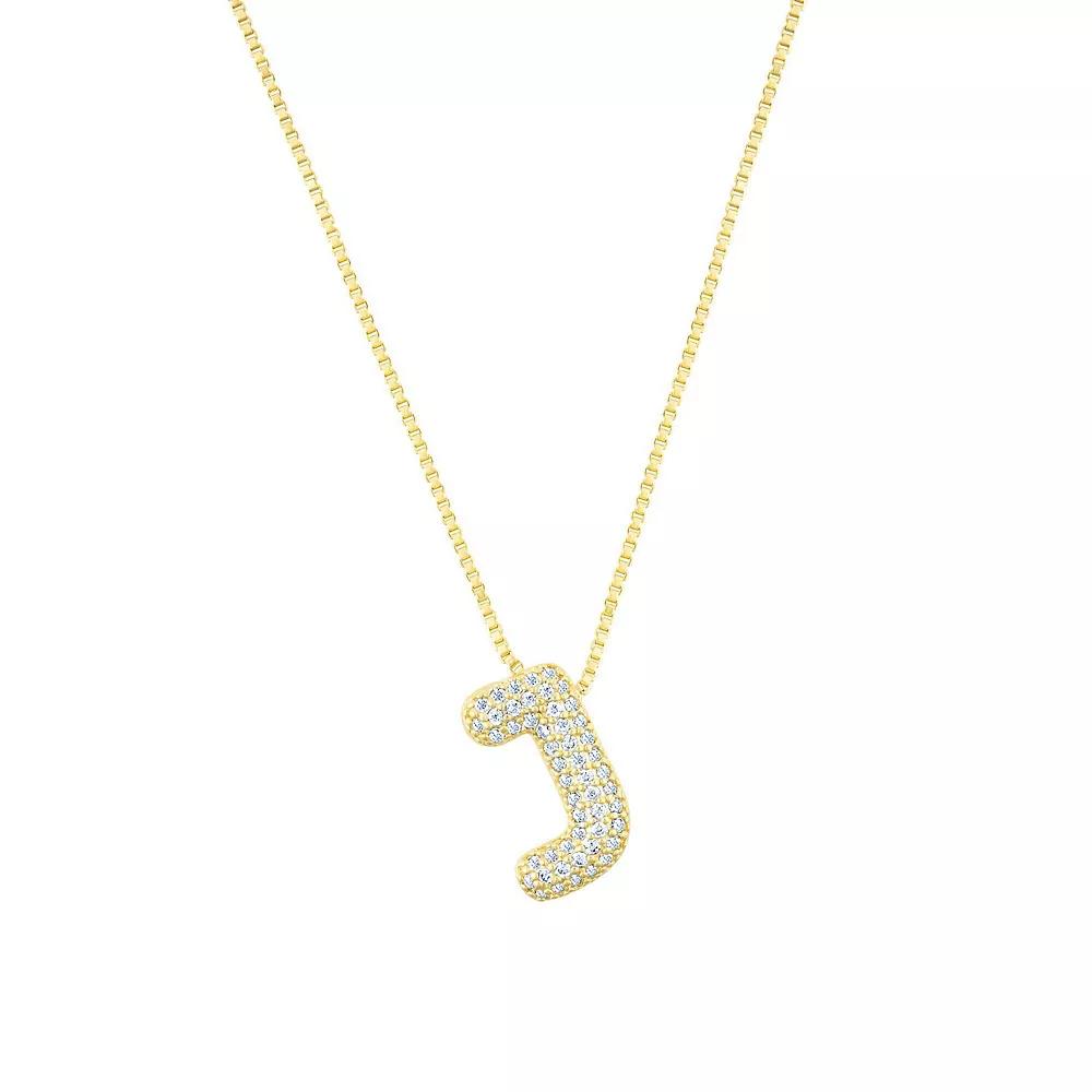 Adornia 14k Gold Plated Pave Bubble Letter Necklace, Women's, Size: 18", J Product Image