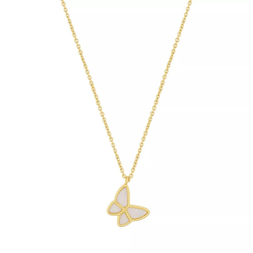 Accent your ensemble with this Adornia 14k Gold Tone Butterfly Necklace. Click on this JEWELRY & WATCHES GUIDE to learn about fit, styles, materials and more! Accent your ensemble with this Adornia 14k Gold Tone Butterfly Necklace. Click on this JEWELRY & WATCHES GUIDE to learn about fit, styles, materials and more! FEATURES Pendant size: 0.5L x 0.5W Chain length: 16 in. + 2-in. extender Chain type: cable Clasp: lobster-claw Nickel free Metal: brass Plating: 14k gold flash Finish: polished Packaging: pouch Imported Size: 16-20 ADJ. Color: Gold Tone White. Gender: female. Age Group: adult.