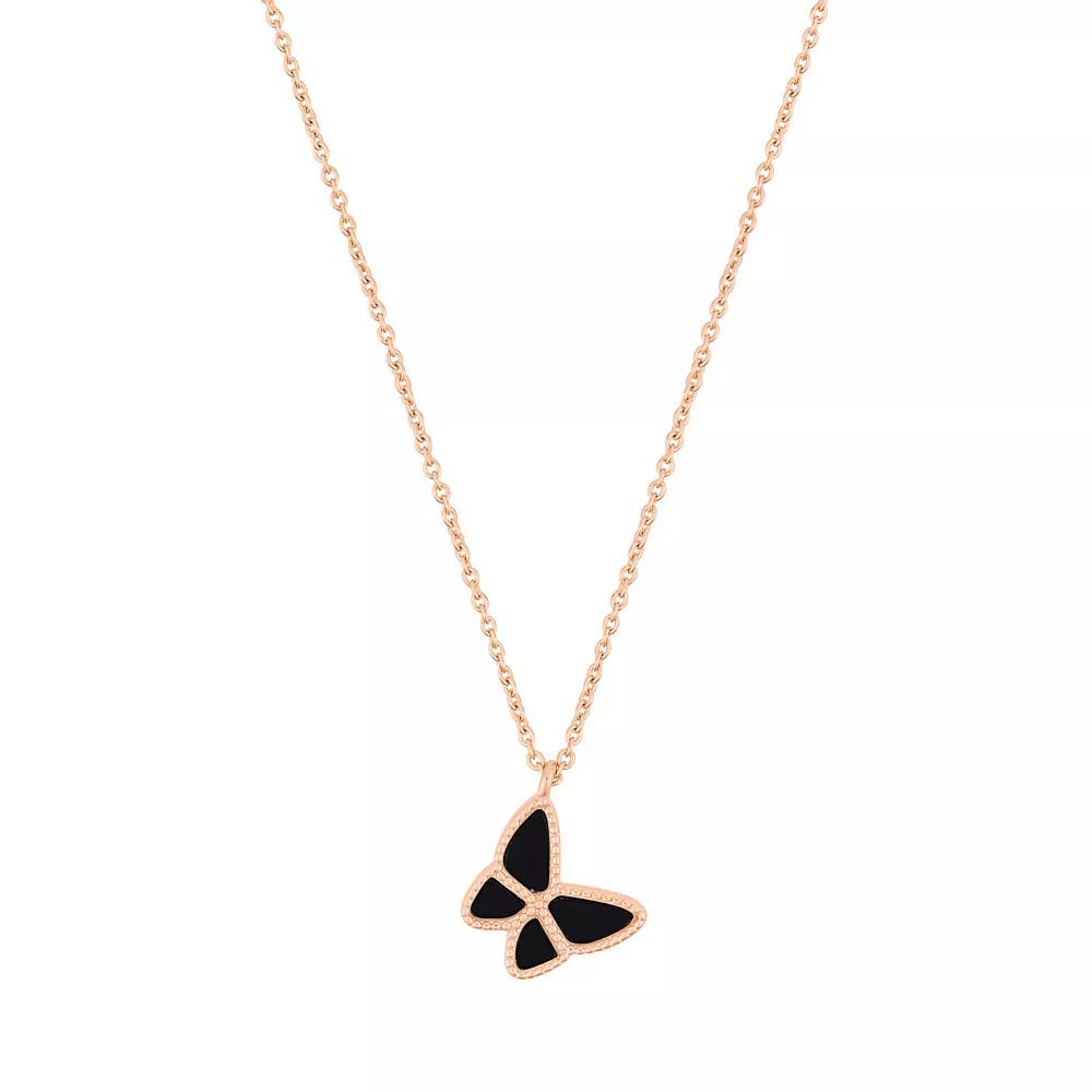 Accent your ensemble with this Adornia 14k Gold Tone Butterfly Necklace. Click on this JEWELRY & WATCHES GUIDE to learn about fit, styles, materials and more! Accent your ensemble with this Adornia 14k Gold Tone Butterfly Necklace. Click on this JEWELRY & WATCHES GUIDE to learn about fit, styles, materials and more! FEATURES Pendant size: 0.5L x 0.5W Chain length: 16 in. + 2-in. extender Chain type: cable Clasp: lobster-claw Nickel free Metal: brass Plating: 14k gold flash Finish: polished Packaging: pouch Imported Size: 16-20 ADJ. Color: Rose Tone Black. Gender: female. Age Group: adult.